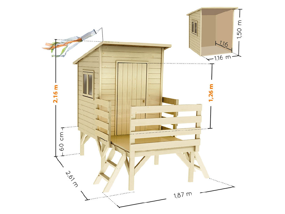 - Une maison de jeu spacieuse et solide en bois