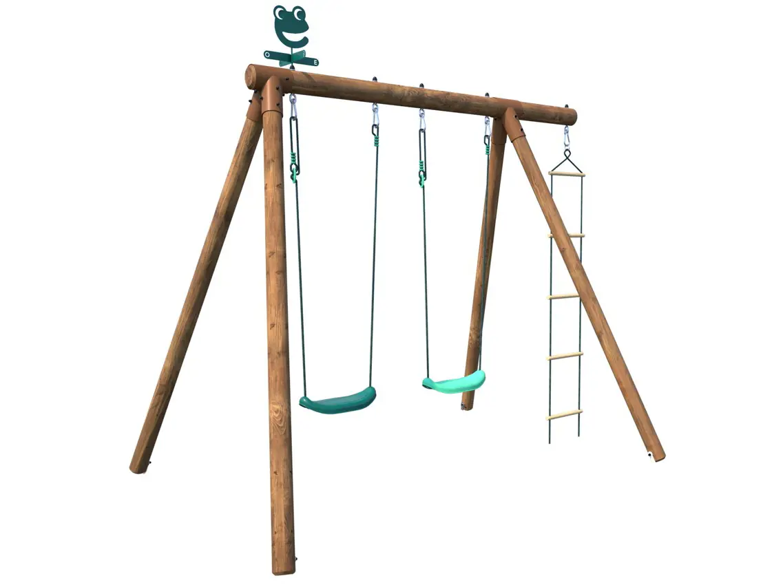 Le bois de la structure est imprégné et protégé contre la pourriture et les champignons, ce qui le rend résistant à toutes les conditions météorologiques. Cela rend le Tonka Swing durable et durera des années.