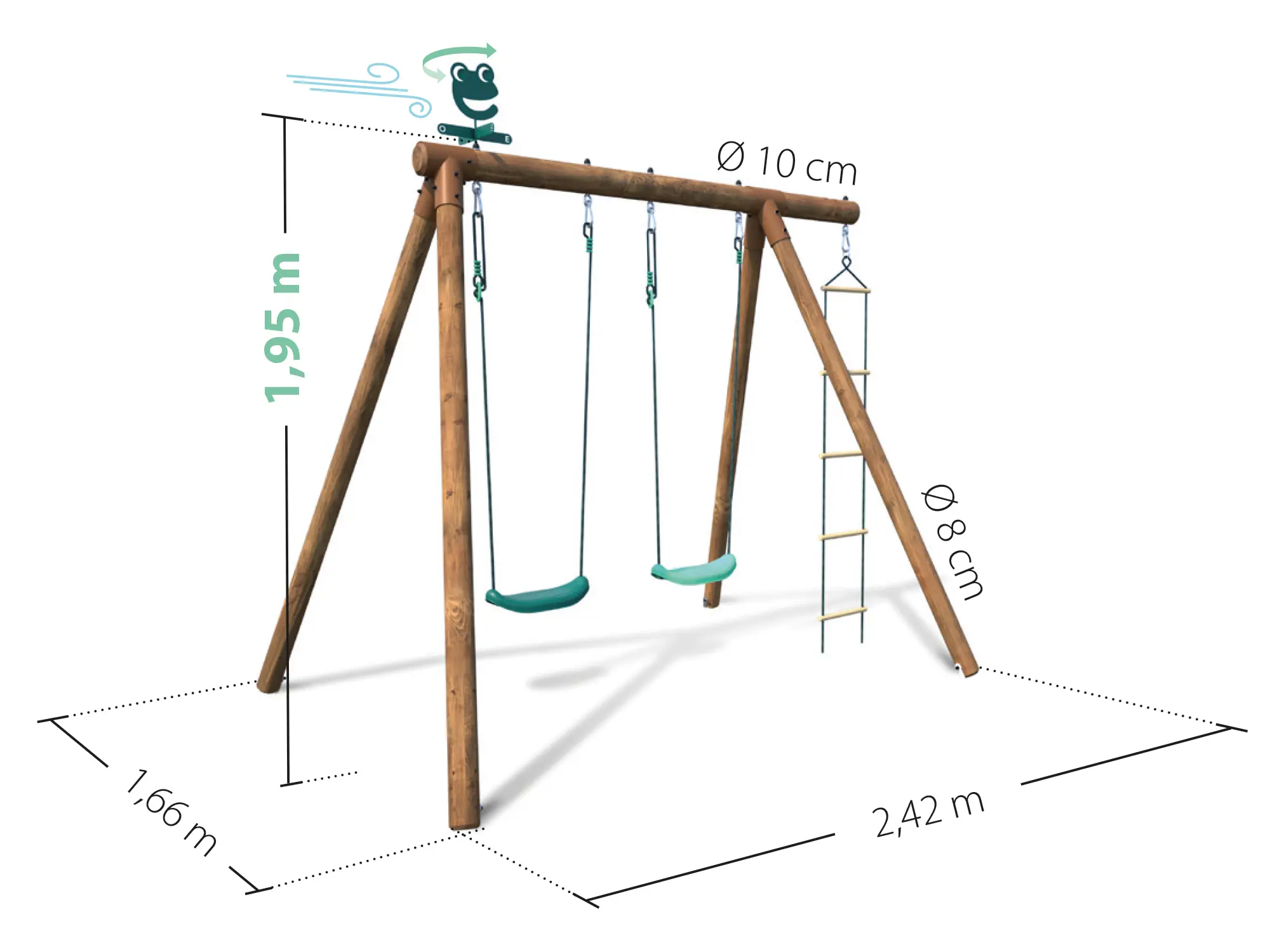 • Balançoire avec 2 sièges réglables et une échelle en corde
