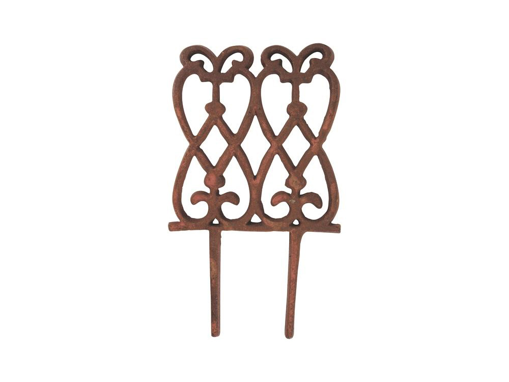 Cette clôture de parterre en fonte de style victorien classique d'Esschert design, avec ses boucles ornées, ajoute une touche d'élégance à votre jardin. Avec ses gracieuses boucles et son design légèrement incurvé, elle constitue non seulement un élément décoratif, mais sert également de délimitation fonctionnelle de votre jardin d'herbes aromatiques ou de votre parterre de fleurs.