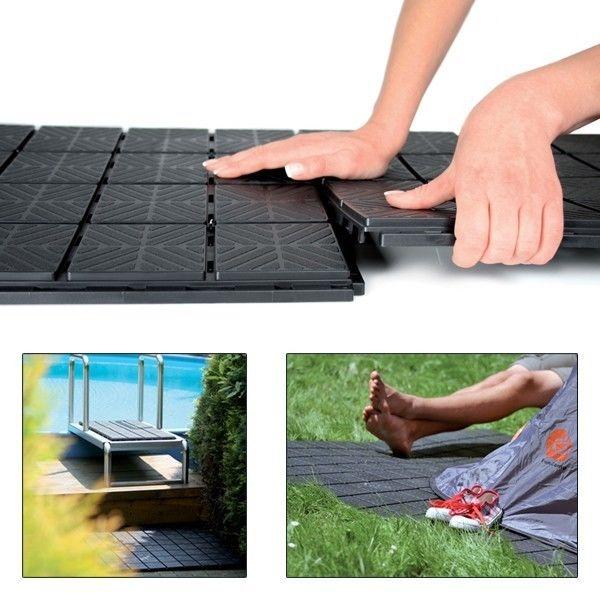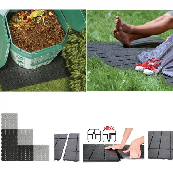 Ils sont flexibles et peuvent être utilisés comme chemin à réaliser au jardin, pour un sol de tente, sous un tonneau de compost, pour la caravane, dans la serre, autour de la piscine... Les carreaux sont aussi suffisamment solides pour permettre l'usage de brouettes etc.