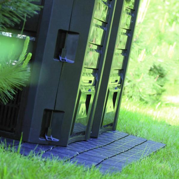 Ces carreaux de jardin universels sont valables pour une longueur de 3,5 m ou ou pour remplir 1,5 m². Les carreaux de jardin noirs avec une couche anti-dérapante s'emboîtent très simplement les uns dans les autres grâce à un système pratique de fixation en un clic.