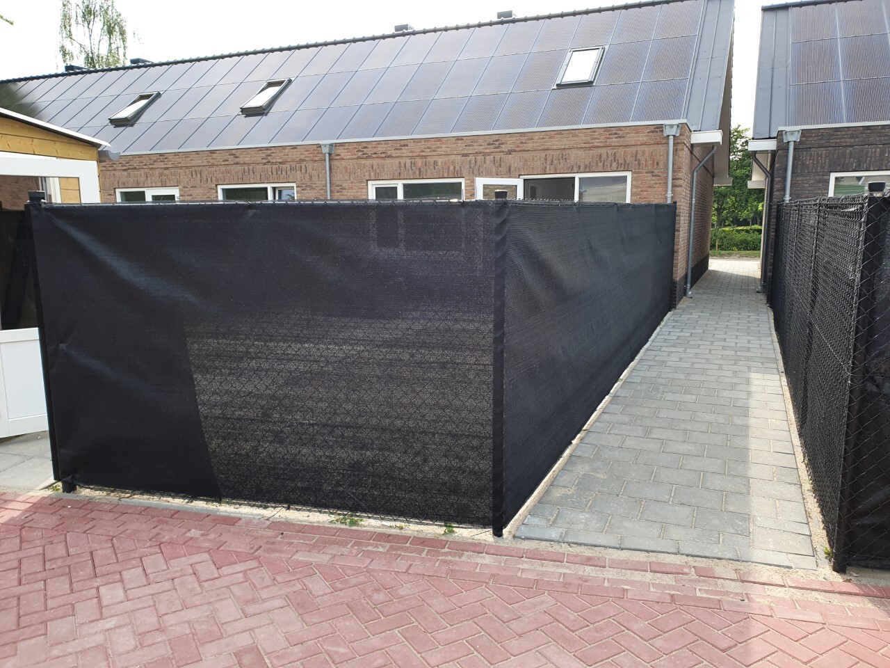 Le tissu est doté d'une bande de fixation tissée en haut et en bas, à travers laquelle un fil de liage ou un fil métallique doit être enfilé. Le filet noir brise la vue, vous donnant moins de visibilité. De plus, ce filet garantit que votre parcelle reste largement à l'abri du vent.
