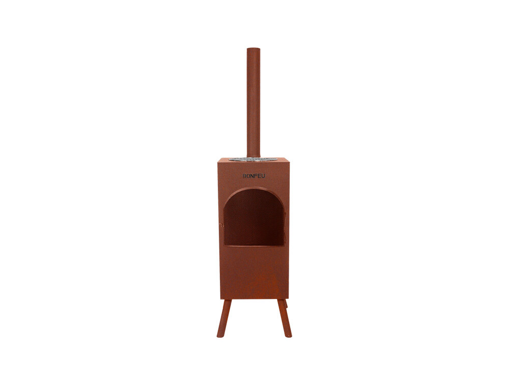 Le BonCarré est un poêle de terrasse rectangulaire et robuste, doté des pieds caractéristiques d'un foyer Bonfeu original.