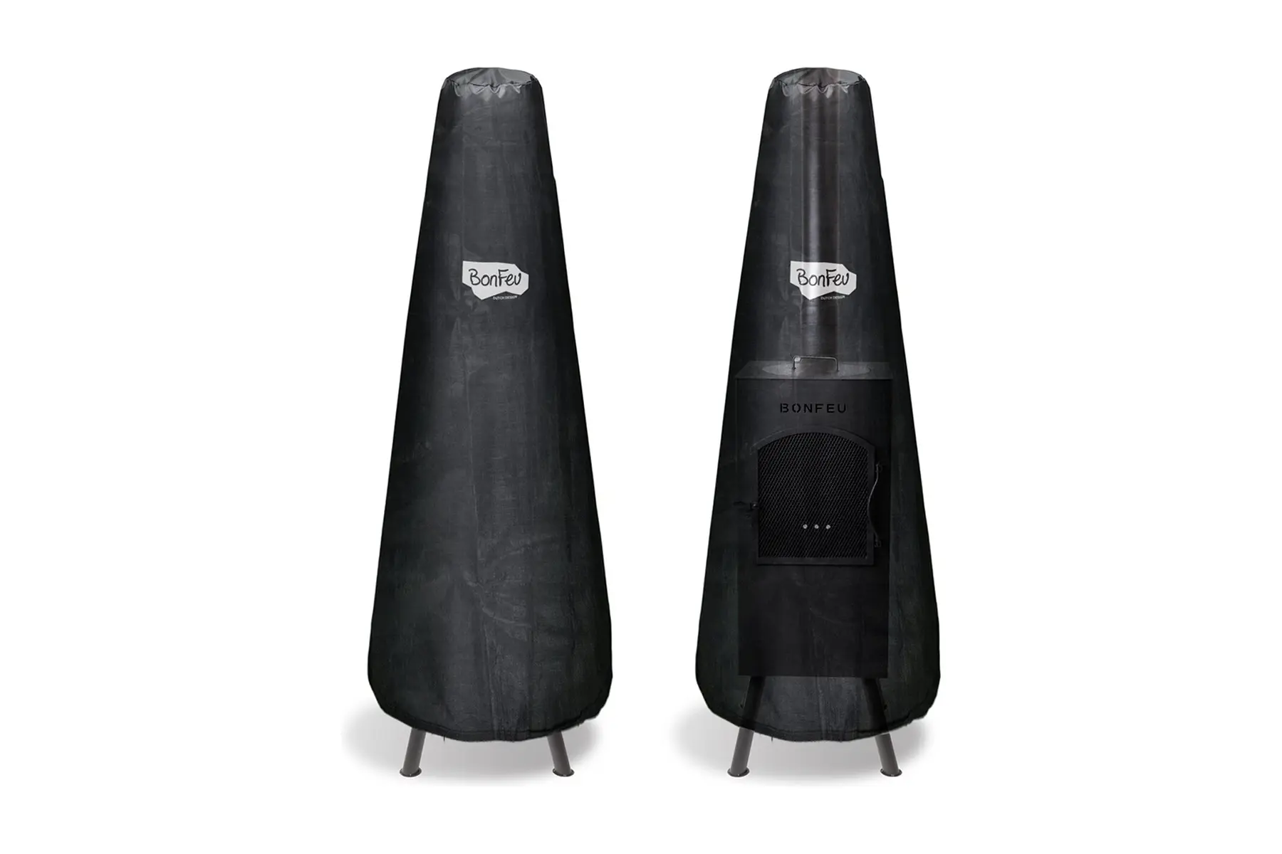 La housse noire est fabriquée en PVC résistant à l'eau et est spécialement conçue pour les cheminées de terrasse BonFeu, notamment pour le BonTino LP.