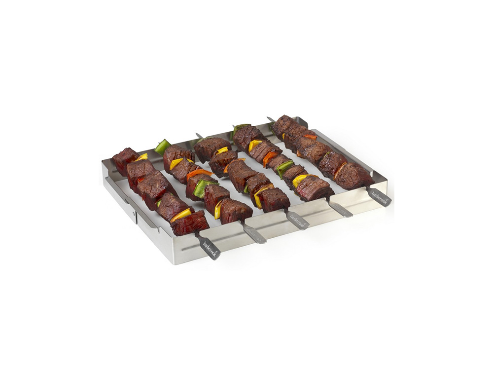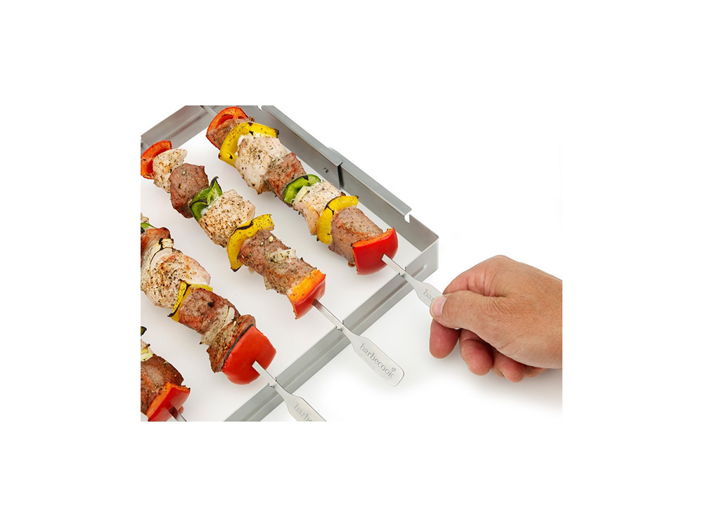 Une invention géniale de Barbecook ! Ce support constitue la meilleure aide pour préparer 5 brochettes sur le barbecue au charbon de bois ou au gaz. Le retournement des brochettes de viande et de poisson se fera facilement et rapidement.