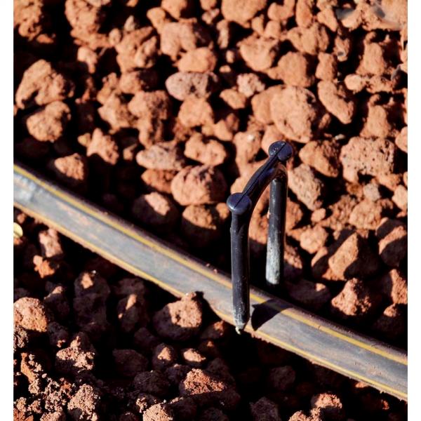 Le crochet des ancrages au sol est bien rond pour fixer les tubages goutte-à-goutte d’une épaisseur maximale de 20 mm.