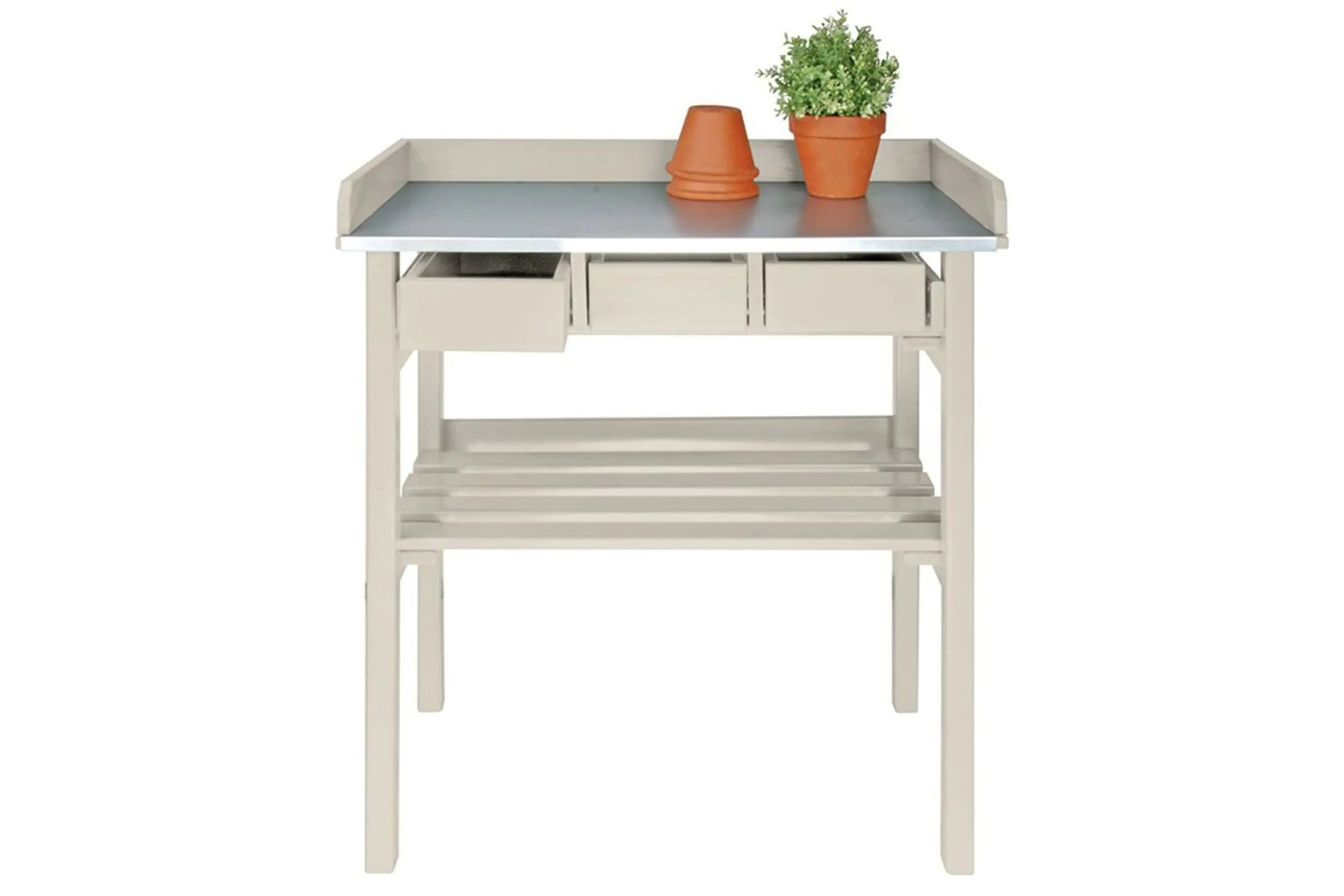 Avec cette table de jardin pratique d’Esschert Design avec trois tiroirs , vous pouvez facilement et rapidement prendre soin des fleurs, plantes et herbes sans avoir à vous pencher ou à vous asseoir les genoux au sol. Cette table de jardin possède un vaste plan de travail galvanisé, ce qui vous permet de le garder facilement propre.
