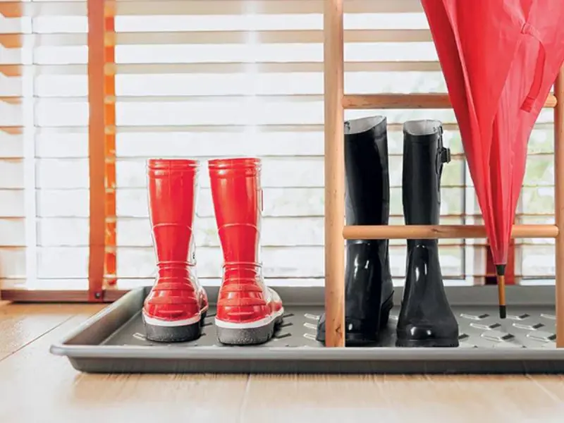 Le tapis en plastique peut servir de plateau goutte-à-goutte pour les chaussures, ou pour transplanter des fleurs et d’autres tâches ménagères. Par exemple, pour le coffre d’une voiture, pour le garder au sec.
