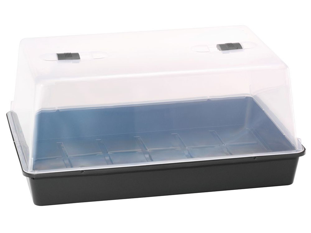 Une serre pratique avec un toit très haut, idéale pour faire pousser des fleurs et des cultures à partir de boutures. La serre peut également être utilisée pour le pré-semis. Le couvercle haut, presque incassable , possède deux vannes de ventilation qui garantissent un climat optimal de culture. Le plat du fond est équipé d’un système de drainage intégré qui fournit de l’eau à toutes les boutures de façon uniforme.