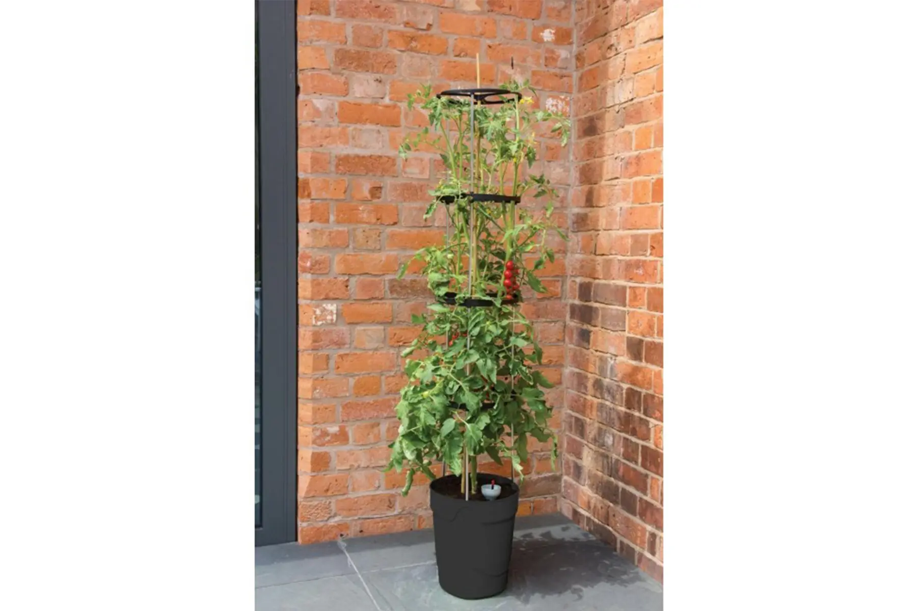 Le pot est équipé d’un solide support végétal de 150 cm de haut composé de quatre anneaux et de guides en aluminium. La tour à 4 niveaux assure une croissance parfaite.