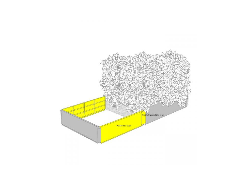 Ce set contient deux panneaux en plastique de 1 mètre sur 25 centimètres, avec lesquels vous pouvez facilement doubler la surface de votre plate-bande de culture. Deux plaques de liaison de 23 x 10 x 0,4 centimètres et un support en U en fer offrent une résistance supplémentaire sur les longs côtés du vaste lit de croissance.