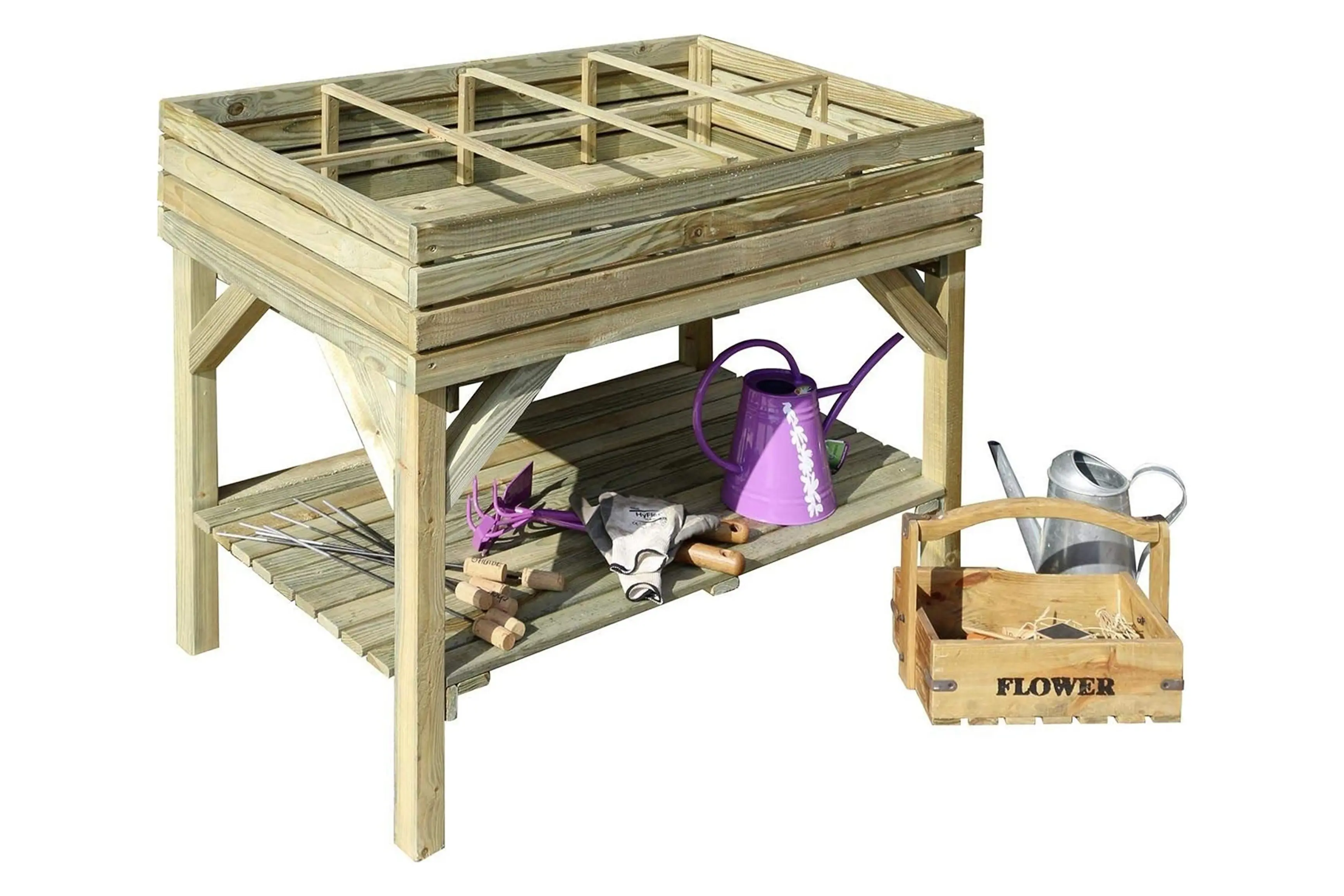 Un beau pot surélevé très solide . Extrêmement adapté aux herbes d’herbes et légumes de jardin,...! Cette table de potager possède 8 compartiments de 22 par 27 cm qui, ensemble, peuvent accueillir 108 litres. Sous le bac, il y a une étagère pour ranger les objets du jardin.