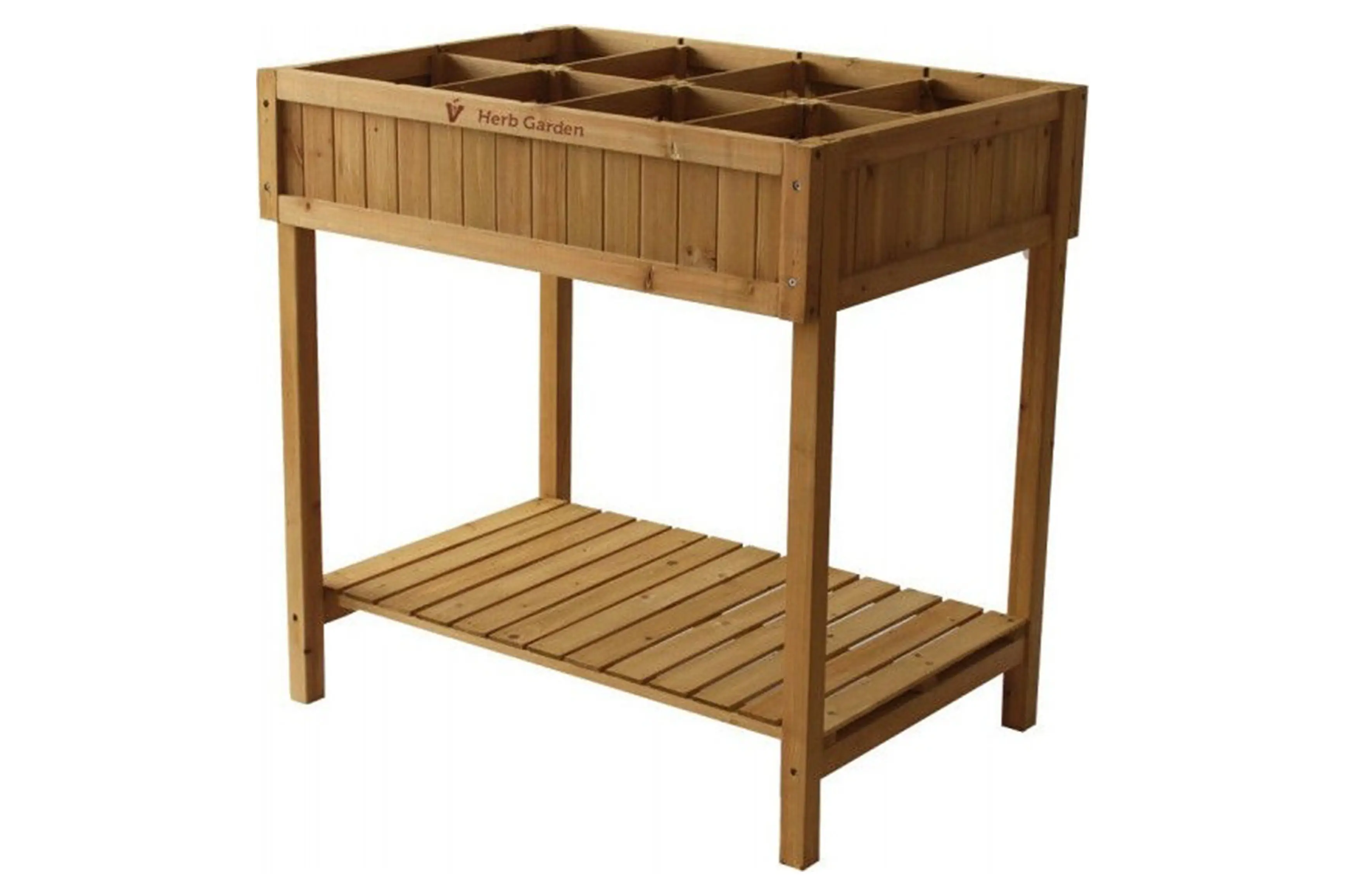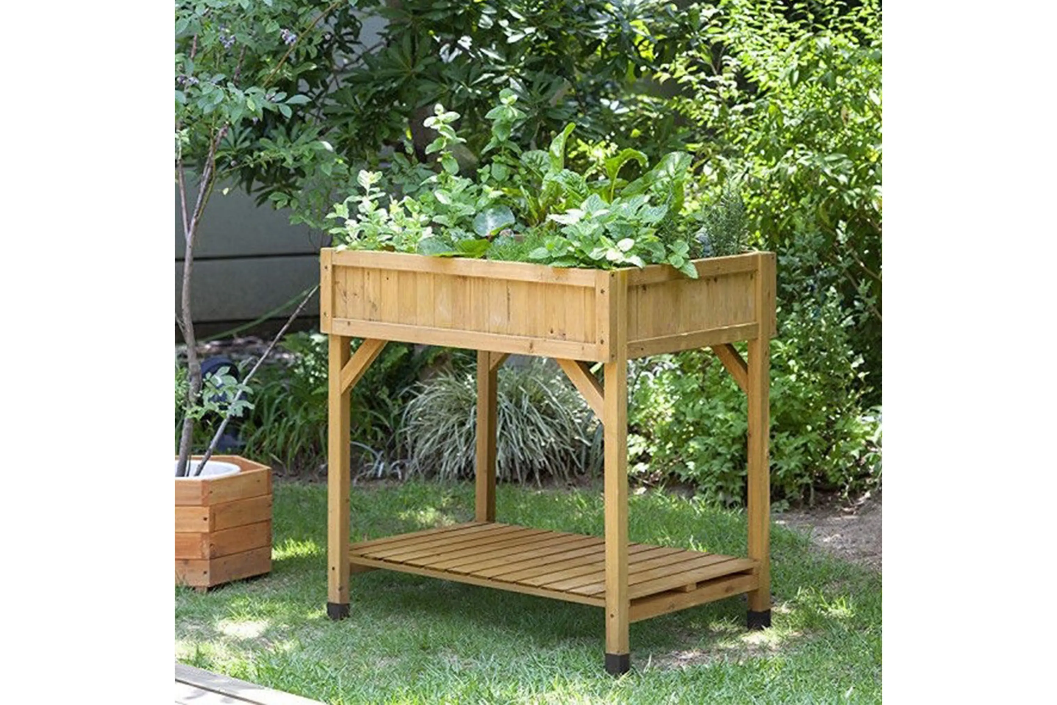 Cette table de potager fonctionnelle et solide est très ergonomique. Des protège-pieds en plastique contre l’humidité ascendante sont inclus. Vous pouvez mettre des outils de jardin ou d’autres objets sur l’étagère de rangement en bas. Bien sûr, vous pouvez aussi placer des pots supplémentaires d’herbes d’herbe pour avoir encore plus d’espace de culture.