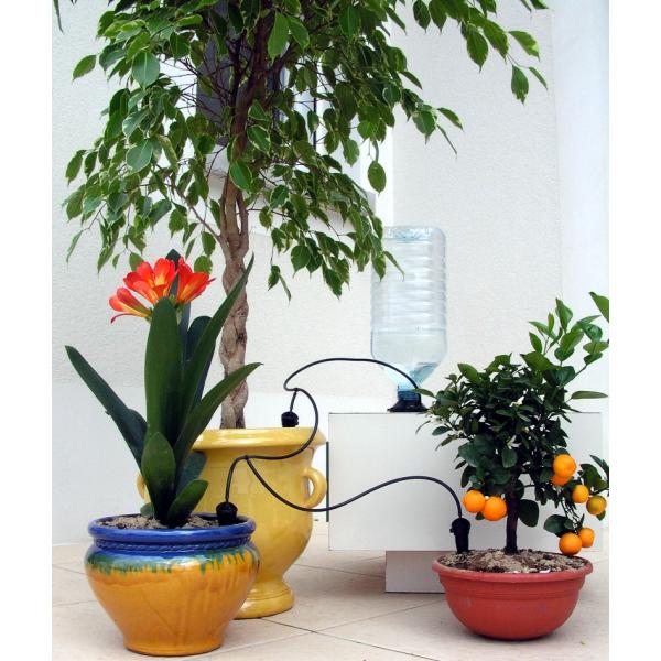 Ce système pratique d’irrigation goutte à goutte peut être utilisé sur des bouteilles PET d’une capacité allant jusqu’à 2 litres. Avec ce système, vous pouvez arroser 3 plantes différentes d’intérieur et de patio pendant jusqu’à douze jours , selon la taille et l’espèce de la plante, idéales pour les fêtes. Ce système de goutte peut bien sûr aussi être utilisé dans le potager pour arroser de nombreuses cultures. Le goutte-goutte réglable de haute qualité n’a pas moins de 11 réglages !