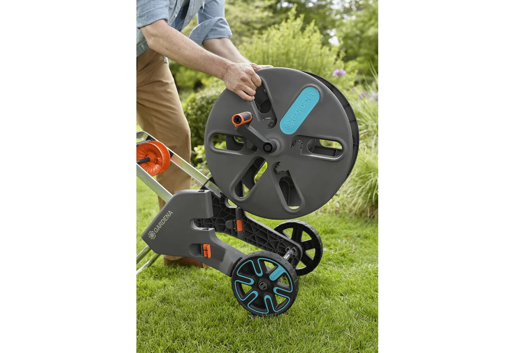 Le Gardena CleverRoll L Easy est un chariot complet qui se distingue par une qualité robuste avec une excellente stabilité. L’ensemble est facile à déplacer avec le levier et les roues, et grâce à la protection innovante contre le gel , il peut être laissé dehors toute l’année sans problème.