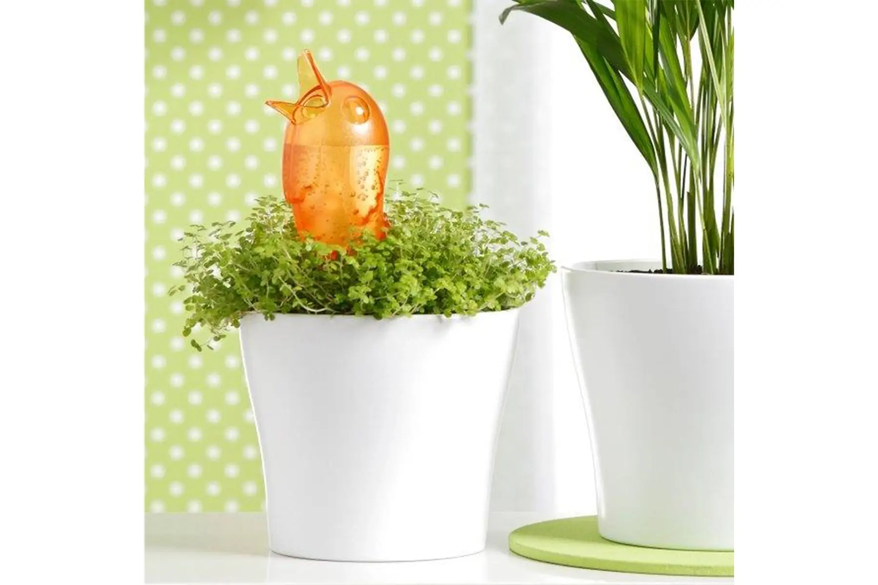 Mettez la brochette en terre cuite dans le terreau de votre plante d’intérieur ou en pot et remplissez le réservoir d’eau en plastique avec de l’eau via le bec de l’oiseau. L’eau est lentement libérée dans le terreau et fournit à vos plantes de l’eau jusqu’à 4 jours. L’oiseau est transparent, donc on peut facilement voir quand on peut ajouter de l’eau.