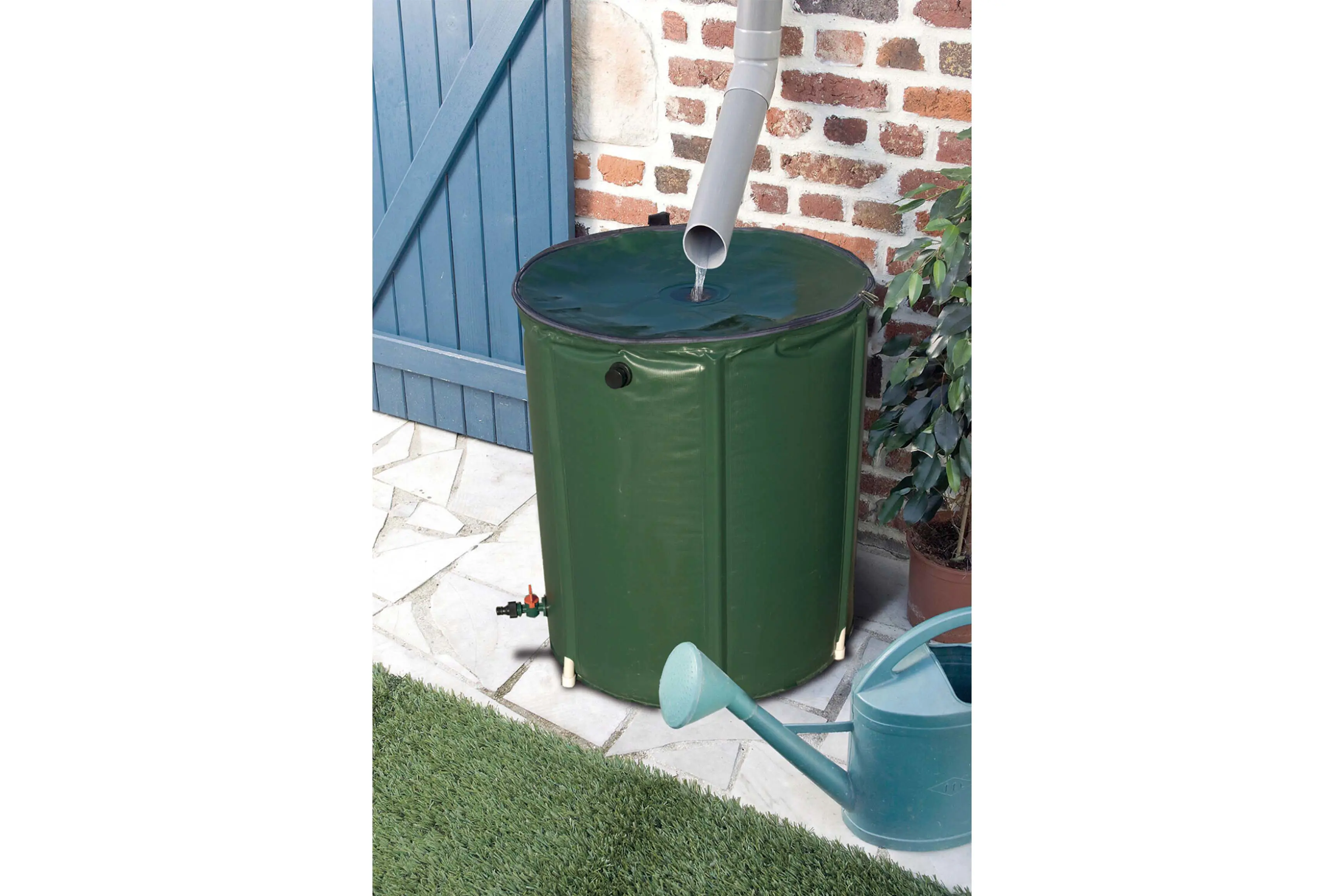 Le réservoir d’eau pliable est la solution idéale pour collecter l’eau de pluie sur les toits des serres et des cabanes de jardin. L’eau collectée peut être utilisée pour arroser les plantes, entre autres. Vous pouvez facilement remplir des seaux le long du couvercle amovible , et il y a aussi un robinet de drainage en bas. Dans le couvercle, il y a un point de connexion pour la descente pluviale. Un tamis à feuilles garantit que les feuilles et autres éléments similaires ne finissent pas dans le réservoir d’eau. Il y a aussi une ouverture sur le côté pour ajouter de l’eau via un tuyau d’arrosage ou un autre tuyau, ou pour connecter plusieurs tonneaux. En hiver, lorsque le réservoir n’est pas utilisé, vous pouvez le stocker de manière compacte jusqu’à la saison suivante.