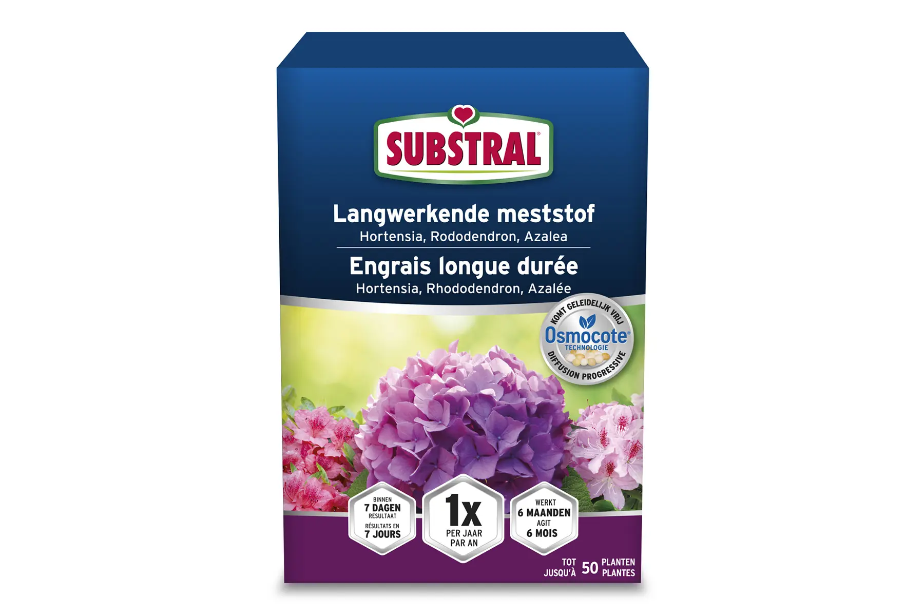 L’engrais à action prolongée de Substral a été spécialement développé pour les hortensias et autres plantes acides qui ont du mal à se développer dans les sols calcaires, tels que le rodondron, l’azalée, le camélia, le magnolia, la bruyère rocheuse, le fraisier et d’autres plantes ressemblant à la bruyère. L’osmocote substral peut être utilisé pour les plantes en terre ainsi que pour les plantes en pots ou dans des jardinières de fenêtre.