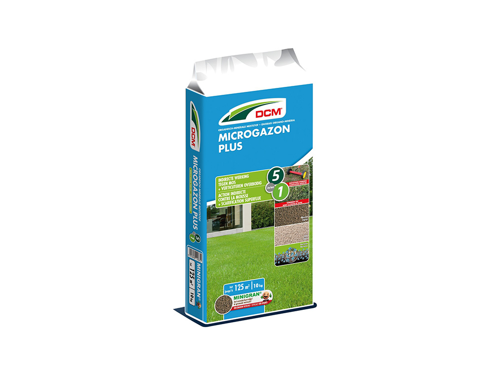 L’engrais minéral organique DCM 'Micro Lawn Plus' est idéal contre la mousse et empêche la formation de couches de chaume sur la pelouse lors de la tonte. L’herbe devient débarrassée de mousse et la couche de chaume disparaît également, ce qui permet à la pelouse d’absorber plus facilement les substances utiles.