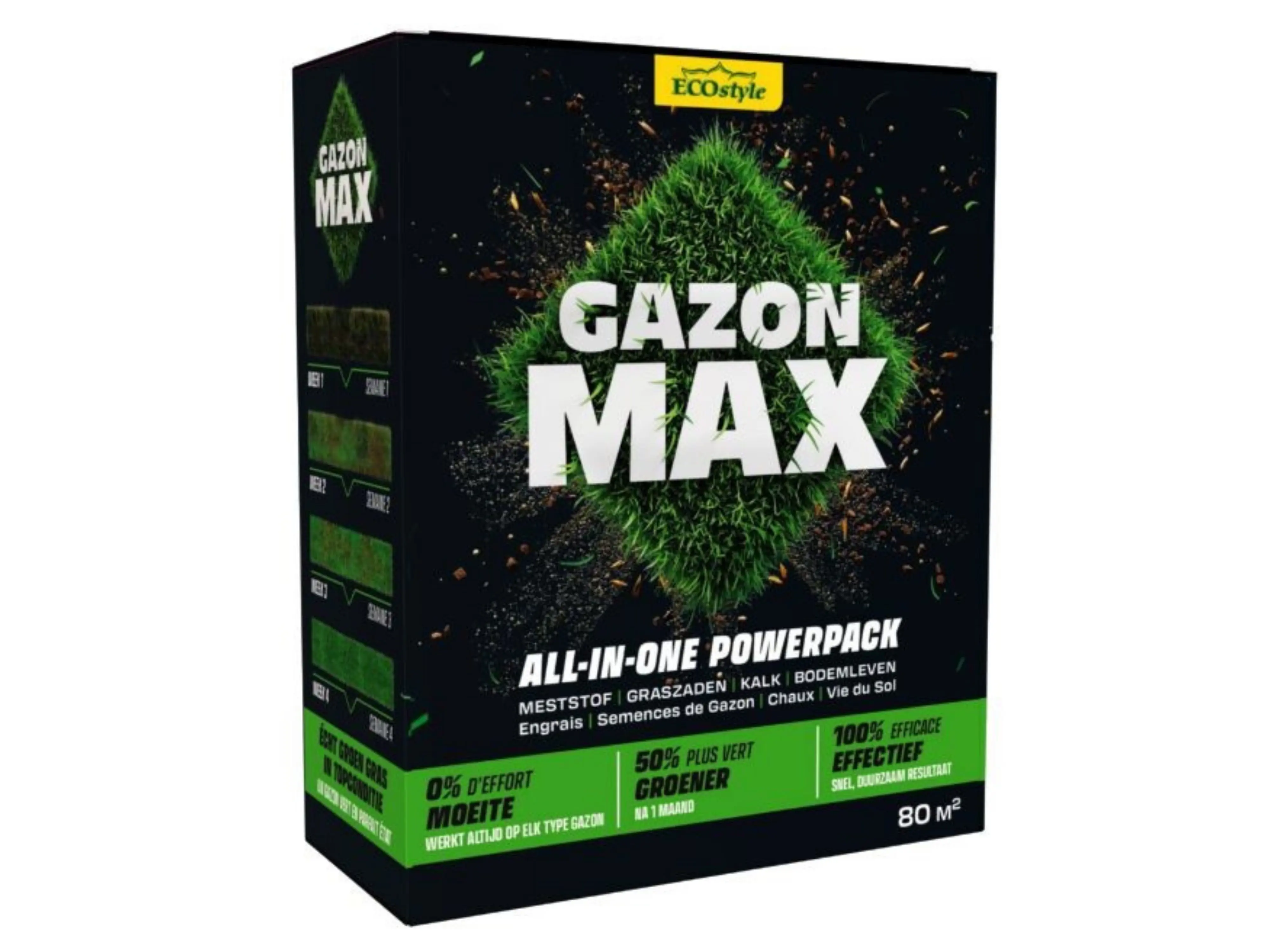 GazonMax d’Ecostyle est la solution ultime tout-en-un pour votre pelouse !  C’est une formule puissante qui combine engrais, graines de gazon biologiques, chaux d’eau et vie du sol. Ce produit polyvalent peut être utilisé toute l’année et garantit un résultat rapide. Après une seule application, vous pouvez profiter d’une pelouse plus forte, plus fournie et plus verte.
