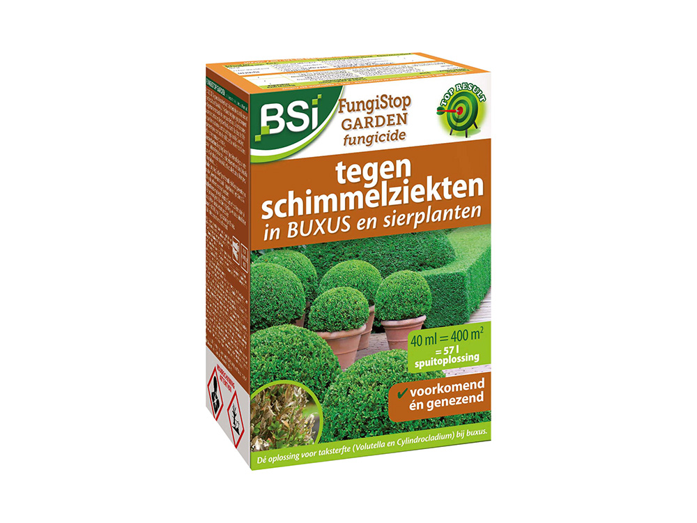 Le jardin BSI Fungistop convient au traitement des maladies fongiques telles que Volutella buxi et Cylindrocladium buxicola. Ces maladies causent la mort des branches à Buis et peuvent causer de véritables ravages, du début de l’été au début de l’automne, surtout par temps humide.