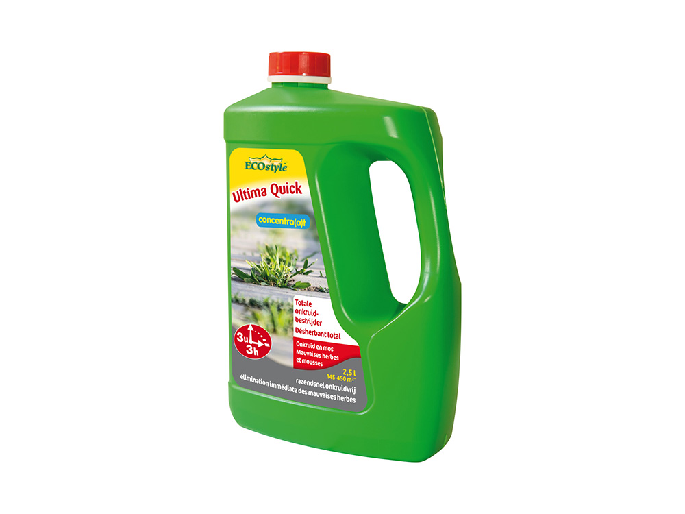 Le concentré Ultima Quick est un désherbant total contre les mauvaises herbes et la mousse. Ce produit a un effet efficace contre les mauvaises herbes, les graminées, la mousse et les algues.