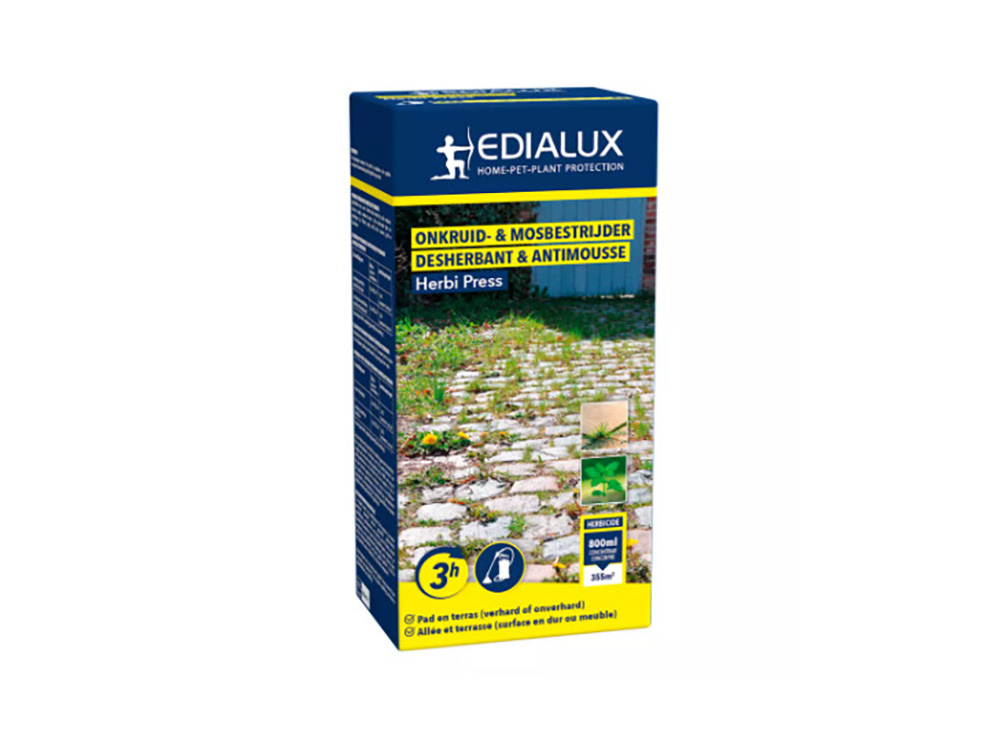 Un tueur total de mauvaises herbes et de mousse à base d’acide pélargonique pour le traitement des zones non pavées et permanentement non cultivées. Herbi Press ne contient pas de glyphosate !