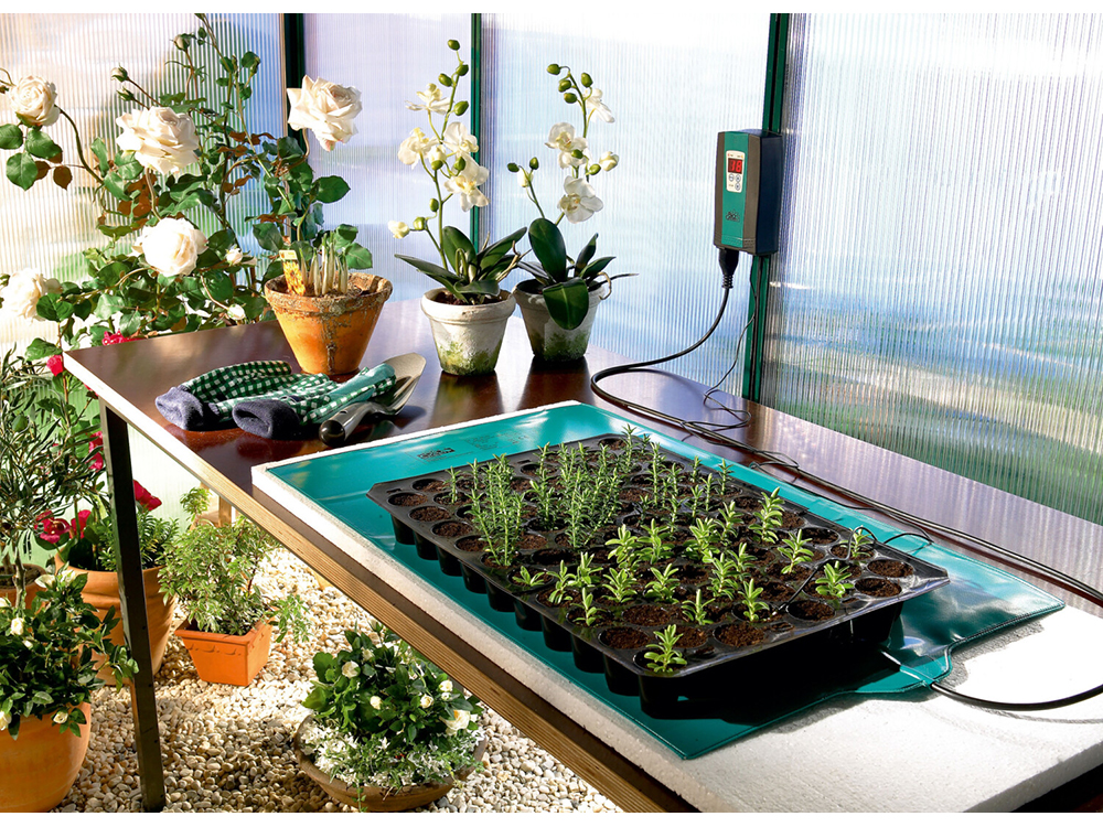 Combiné à une serre, ce tapis chauffant offre les conditions idéales pour une germination réussie des graines aimant la chaleur ou pour un enracinement rapide des boutures.