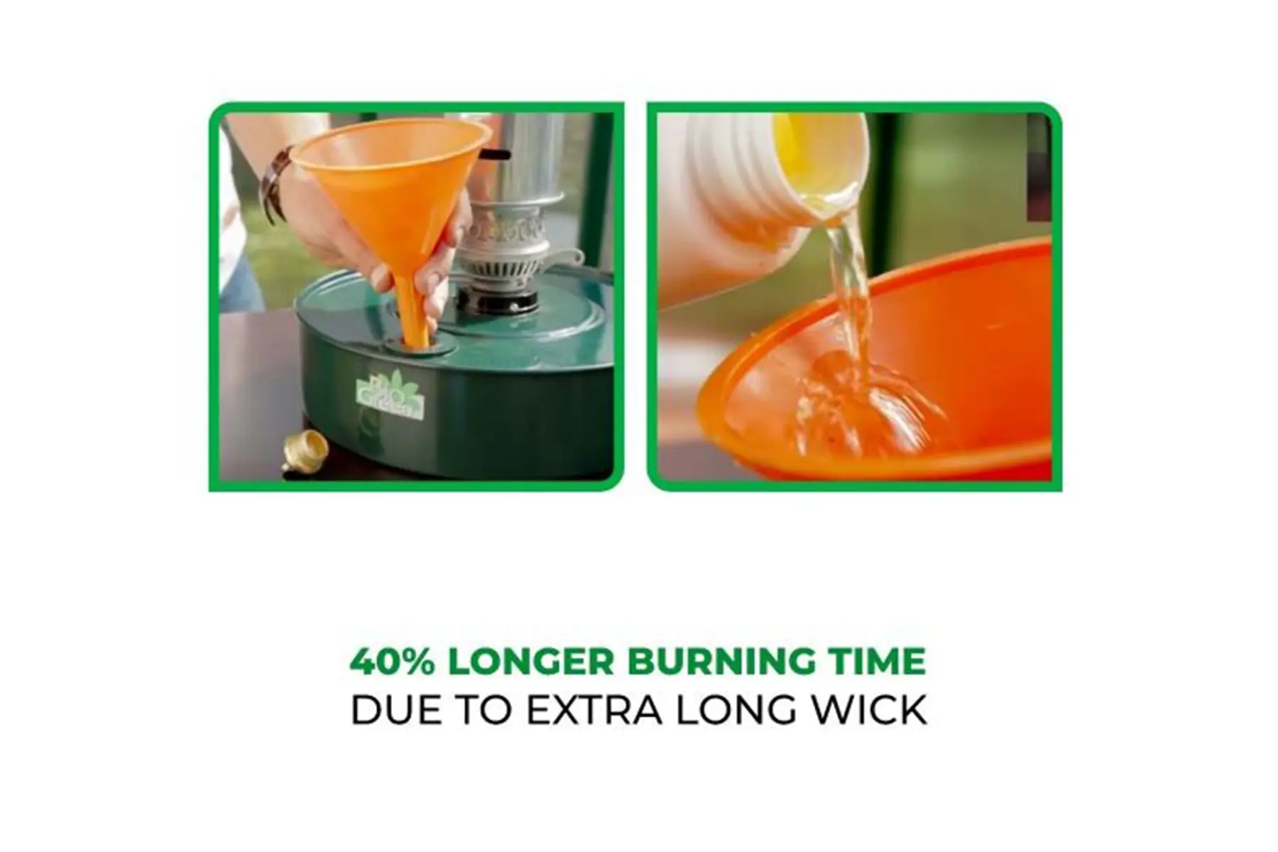 Grâce aux deux lames extra longues, ce brûleur a un temps de combustion 40 % plus long. Le brûleur à kérosène est équipé de crochets de verrouillage pour l’ancrer en toute sécurité au fond si besoin. Le brûleur est robuste et durable.