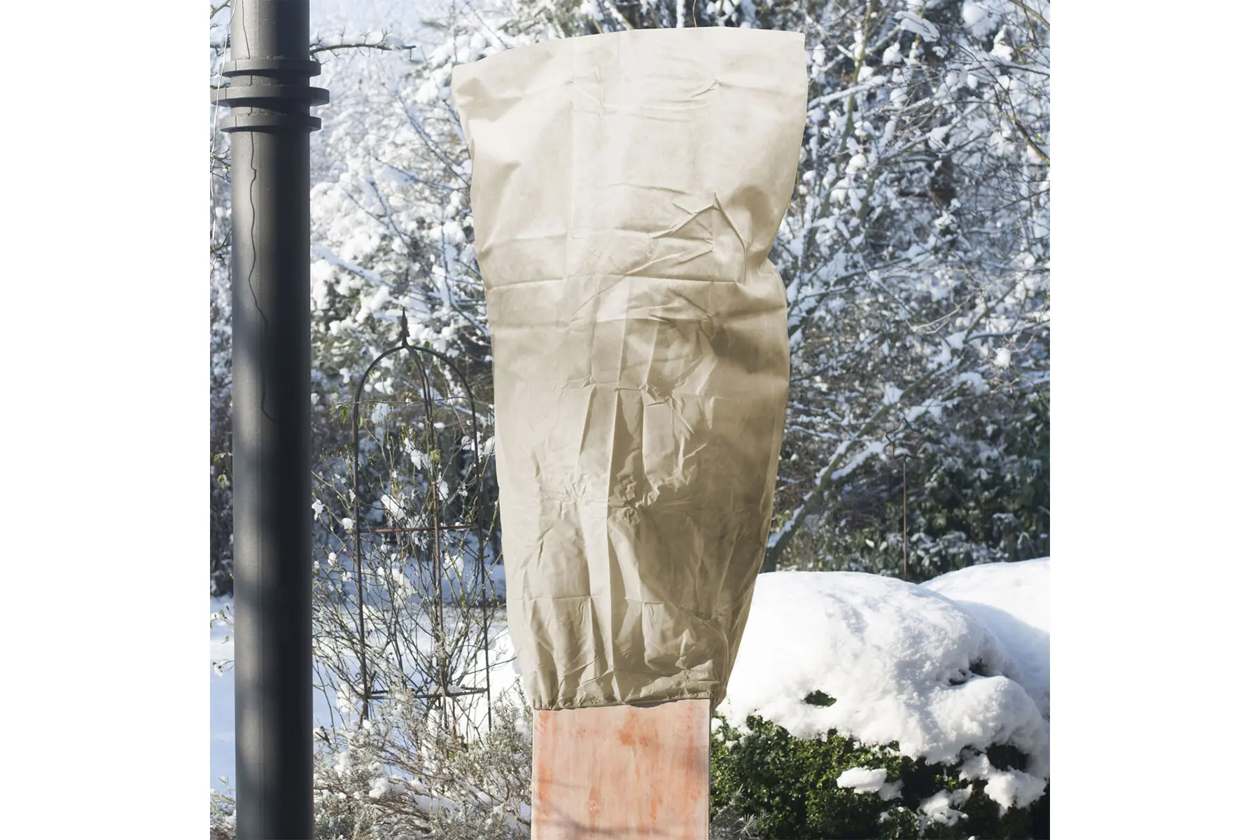 Cette housse d'hivernage très robuste est réalisée en toile de qualité 100 g/m² résistante aux déchirures. Elle protège les plantes sensibles au gel contre le vent glacial, le gel et le soleil d'hiver intense. Une toile d'hivernage efficace également pour protéger les plantes à feuillage persistant. Avec elle, vous réduisez l'évaporation et le risque de dessèchement de la plante.