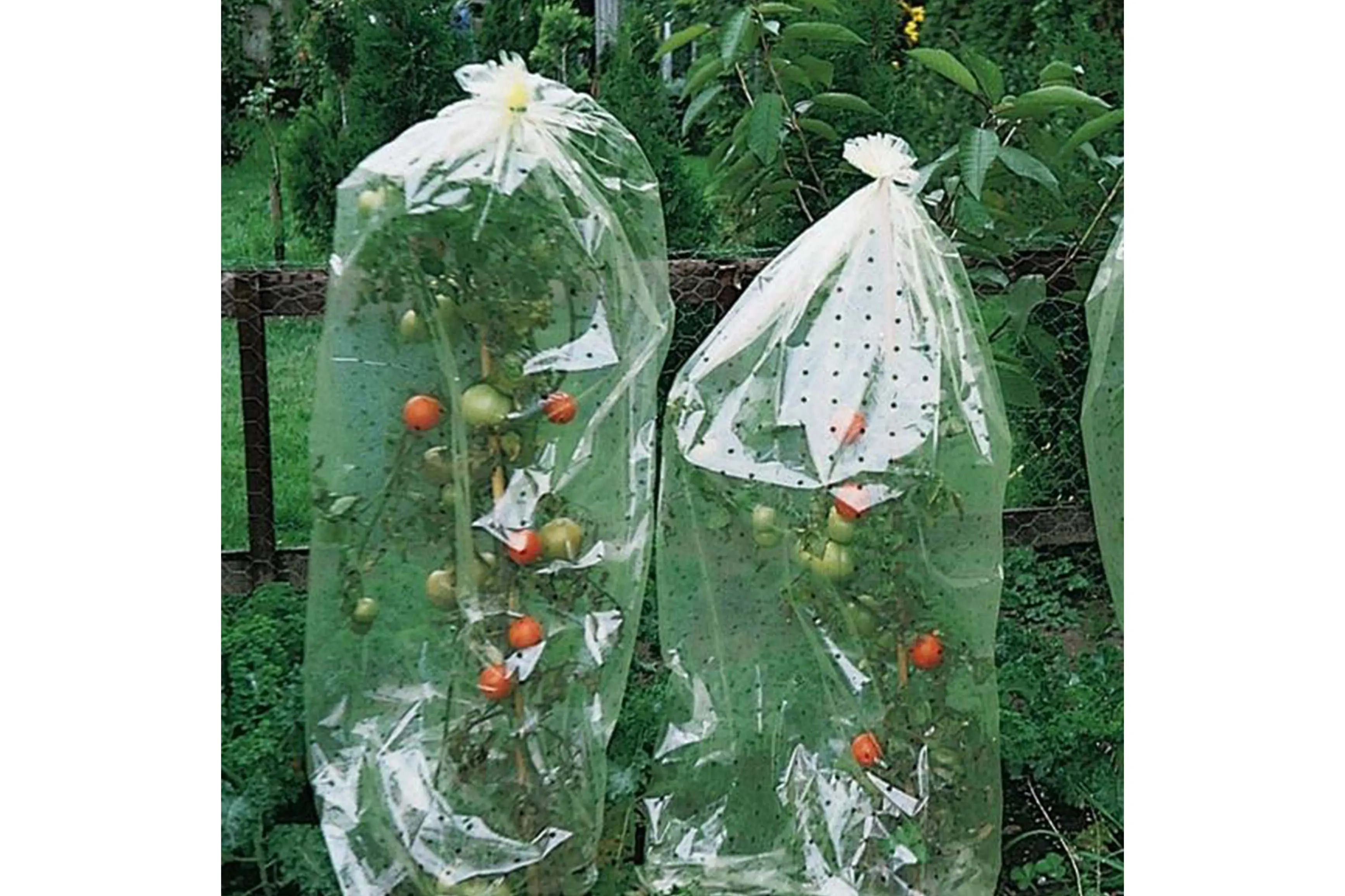 Grâce aux perforations dans la feuille transparente, la ventilation est toujours optimale, et les abeilles peuvent encore atteindre les fleurs pour les polliniser. Le papier d’aluminium de tomate protège également les plantes des limaces, des oiseaux et d’autres nuisibles. Il suffit de découper le film tubulaire à la longueur souhaitée, de le tirer sur la plante et de l’attacher avec de la ficelle de jardin.