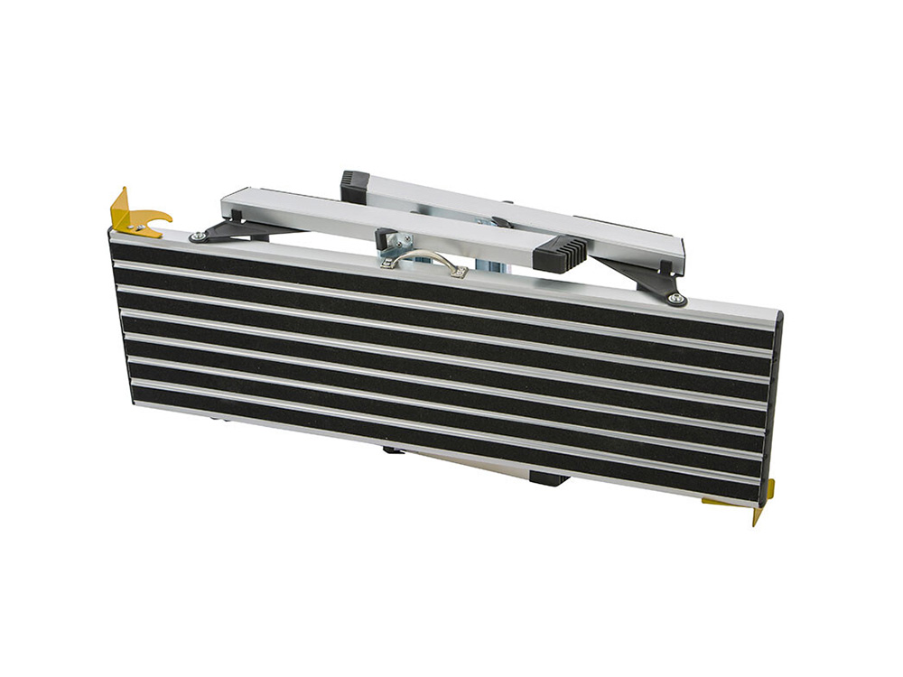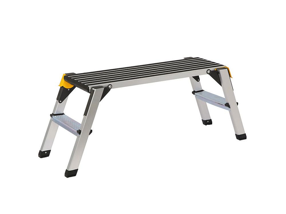 La plateforme de travail est compacte, pliable et équipée d’une serrure de sécurité supplémentaire.