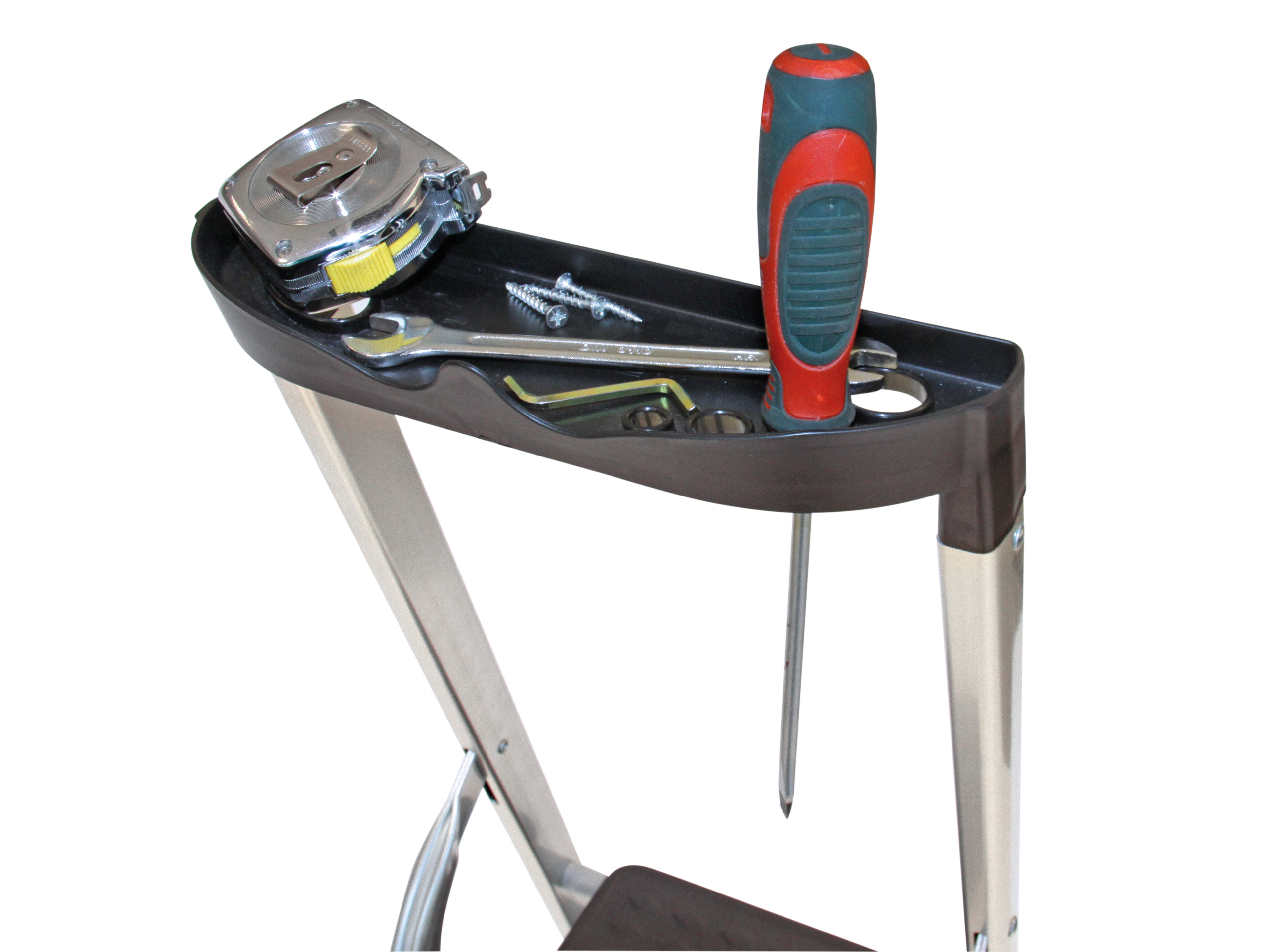 Pour maintenir une bonne prise sur les marches aussi longtemps que possible, les profils sont traités avec une couche anti-saleté . Cela vous permet de travailler en toute sécurité et confiance, même par temps humide. L’escabeau en aluminium Power Step est également équipé d’un porte-outils pratique, situé en haut de l’échelle. Ainsi, vous aurez toujours vos outils nécessaires à portée de main.