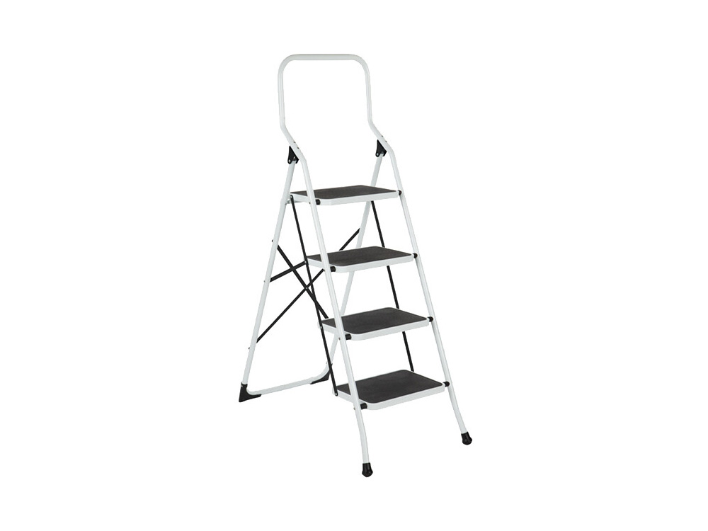 Cet escabeau-escalier Big Step est équipé de 4 marches et d’un tapis antidérapant à chaque marche avec verrouillage automatique, ce qui offre une résistance supplémentaire. Les marches sont laquées en blanc, rendant les marches durables .