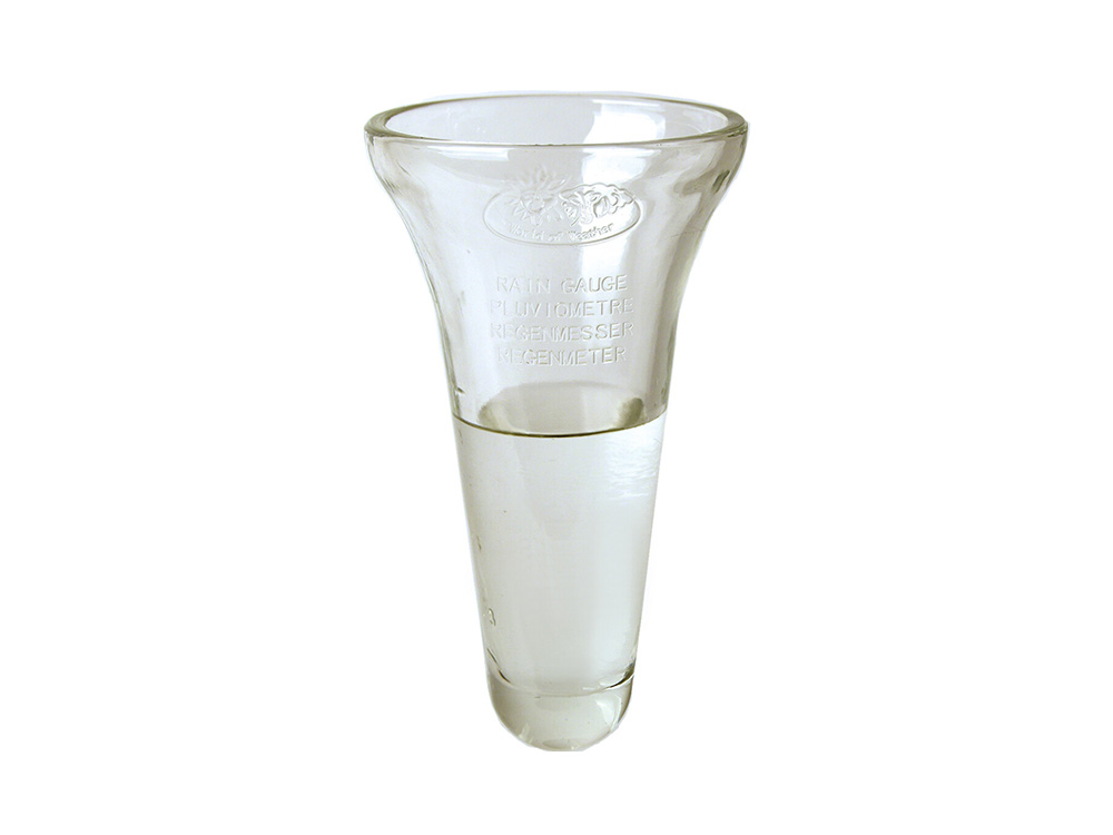 La quantité de précipitations est facile à lire sur cette solide tasse à mesurer en verre. Pour éviter l’évaporation autant que possible, il est important de mesurer les précipitations au moins une fois par jour.