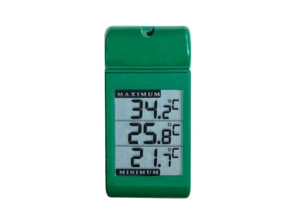 Un thermomètre numérique pratique qui affiche trois mesures : la température minimale, la température maximale et la température actuelle.