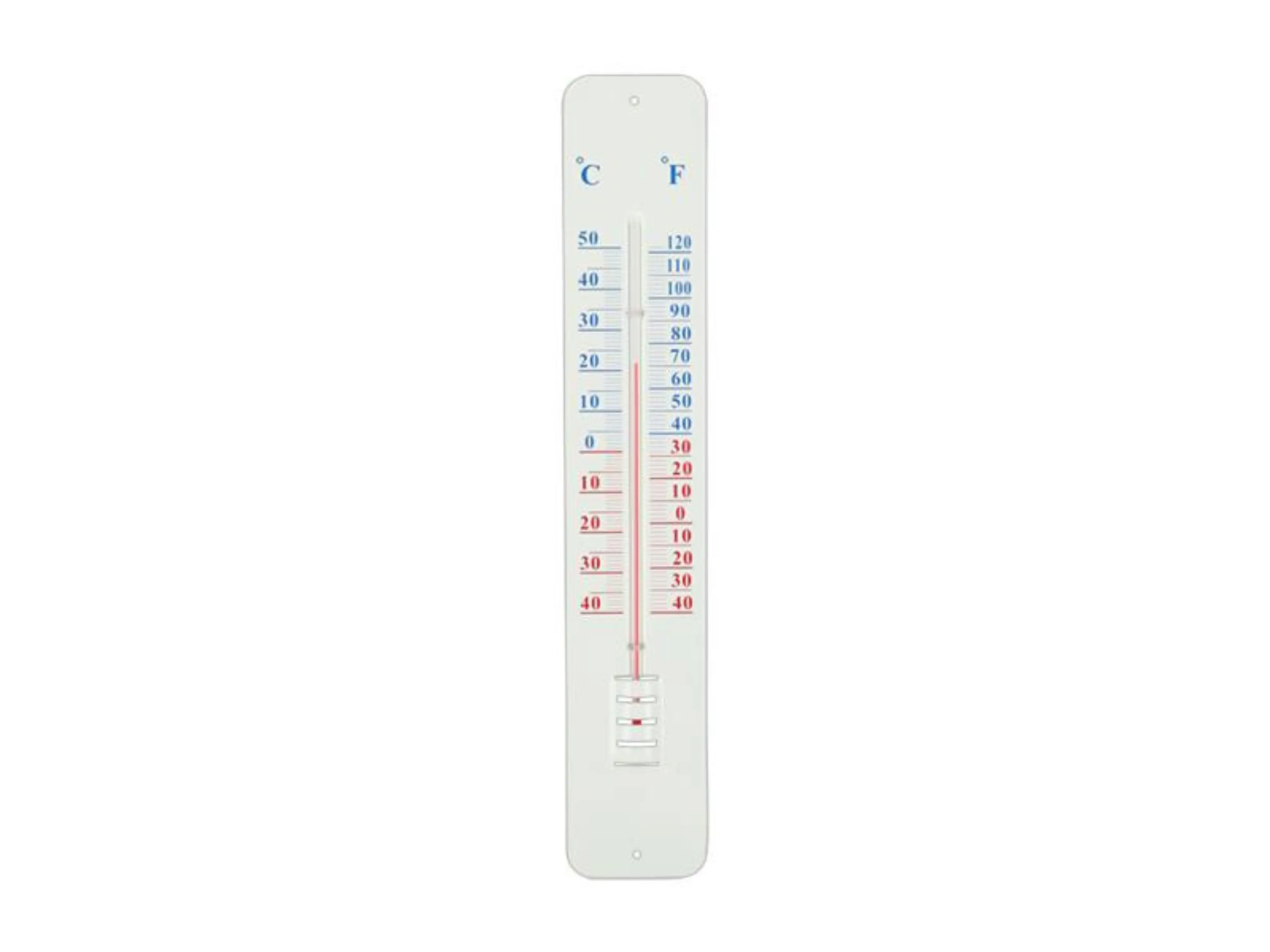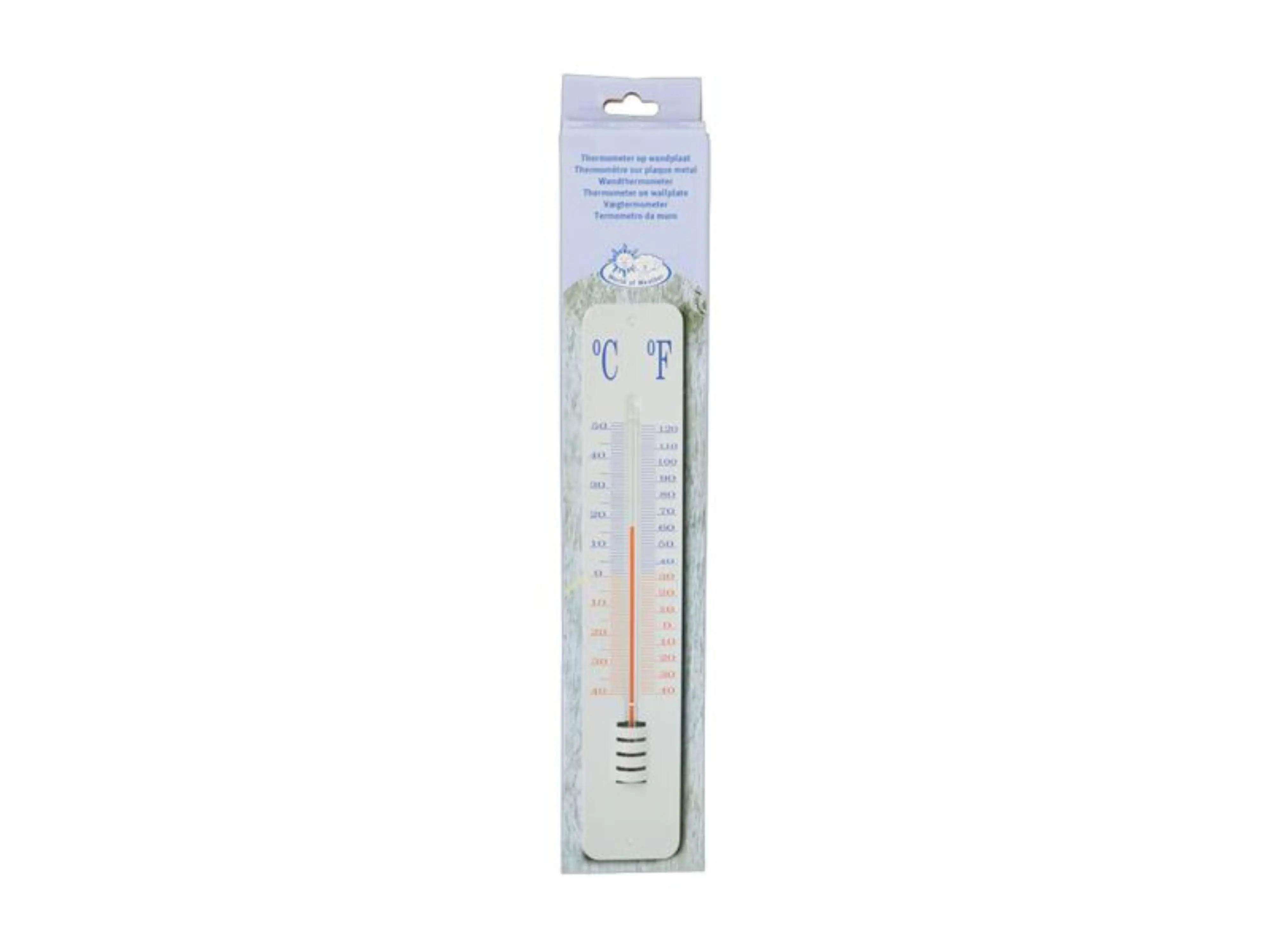 Le thermomètre est fixé à une plaque suspendue solide, ce qui permet de le fixer facilement à un mur, une clôture ou un mur. Vous savez donc toujours exactement quelle température il fait - du milieu de l’hiver au plein été.