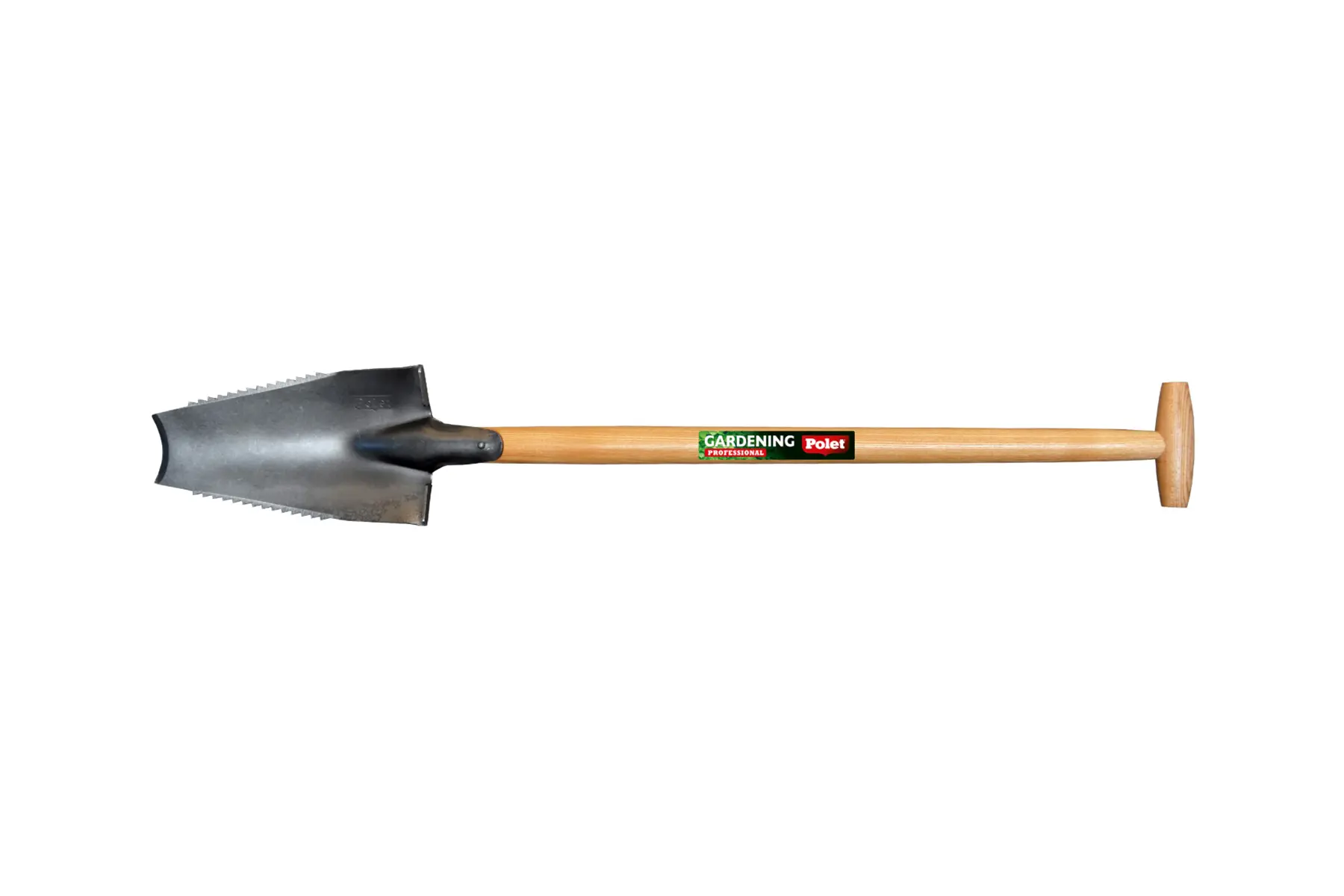 La pelle à racines d’arbre et la scie 1 de Polet sont fabriquées en acier extra-trempé avec repose-pieds. Avec la poignée en T en frêne , tu peux facilement utiliser la pelle.