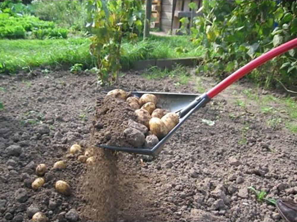 • Dans le potager, vous pouvez facilement ramasser les pommes de terre, les tubercules et les bulbes récoltés et retirer leur terre sans les endommager.