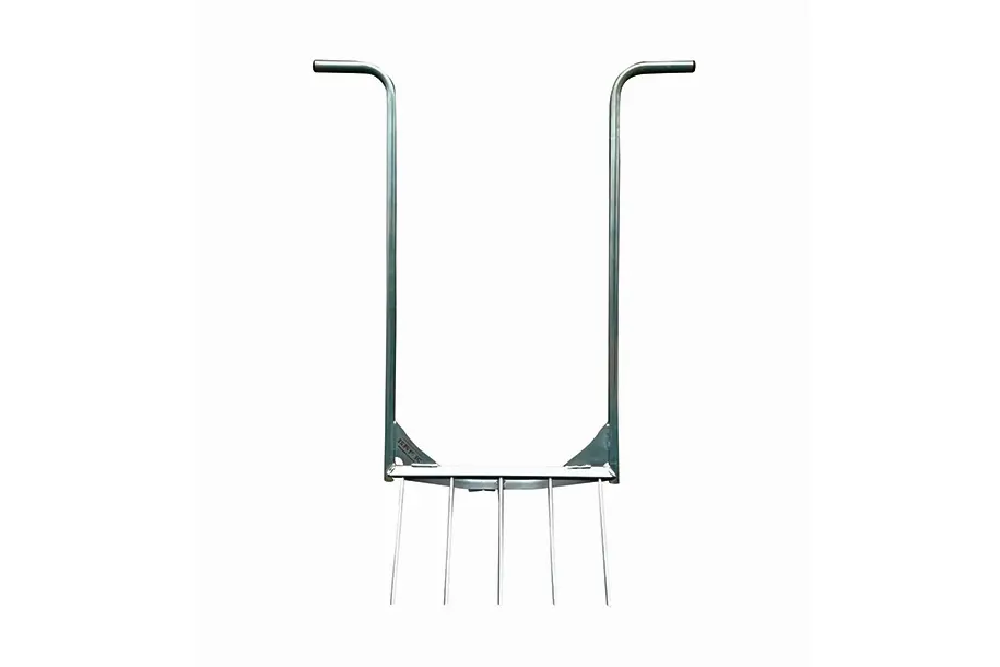 Construction solide en acier galvanisé. Les dents sont de « qualité ciseau ». L’espace large entre les poignées garantit suffisamment d’espace pour la carrosserie. La fourche de labour possède 5 poudres de 26 cm et est équipée de deux poignées pour travailler le sol avec un minimum d’effort.
