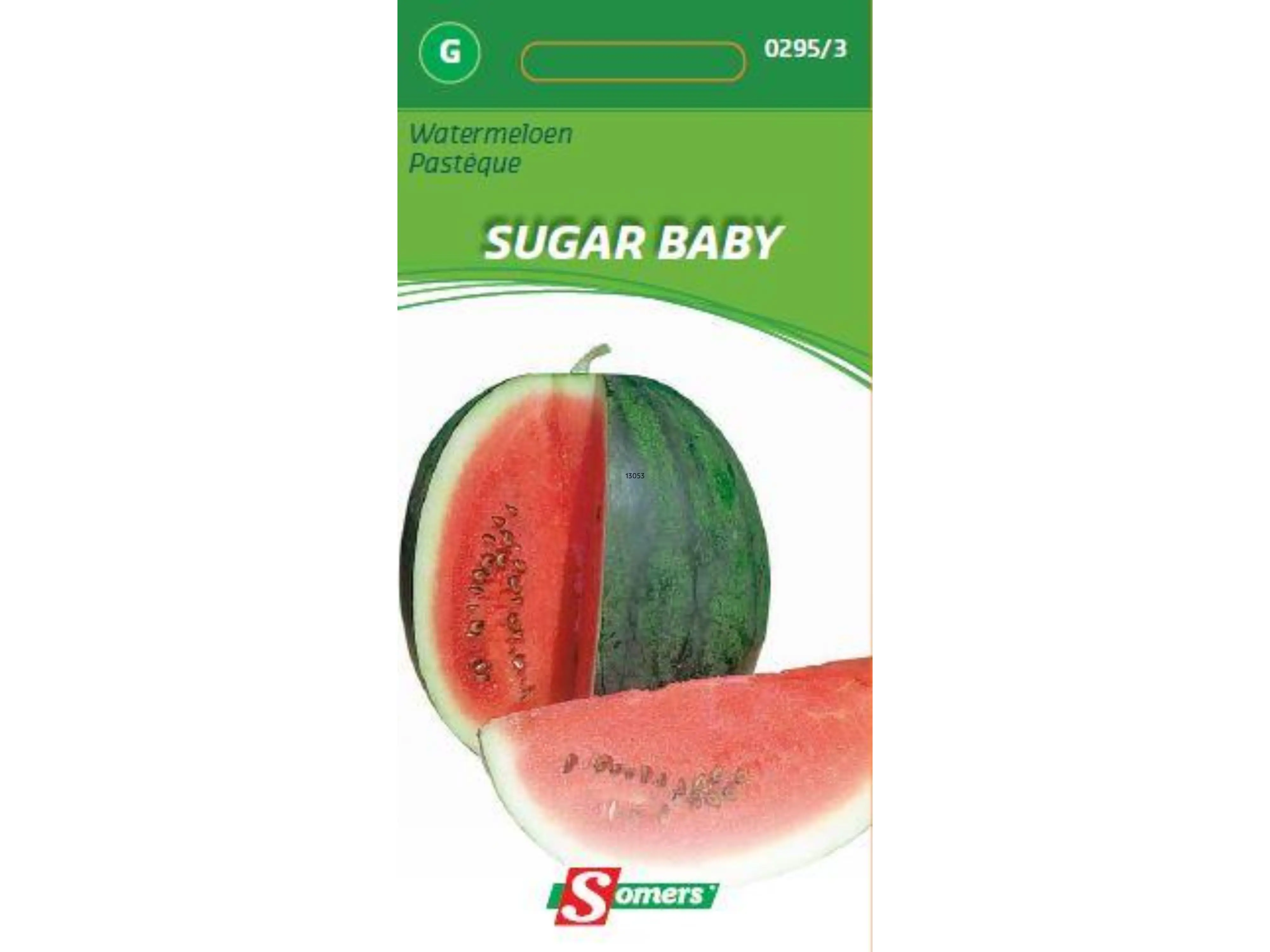 La pastèque Sugar Baby est un grand fruit rond à la peau vert foncé et à la chair rouge vif, pesant 3 à 4 kg chacun.