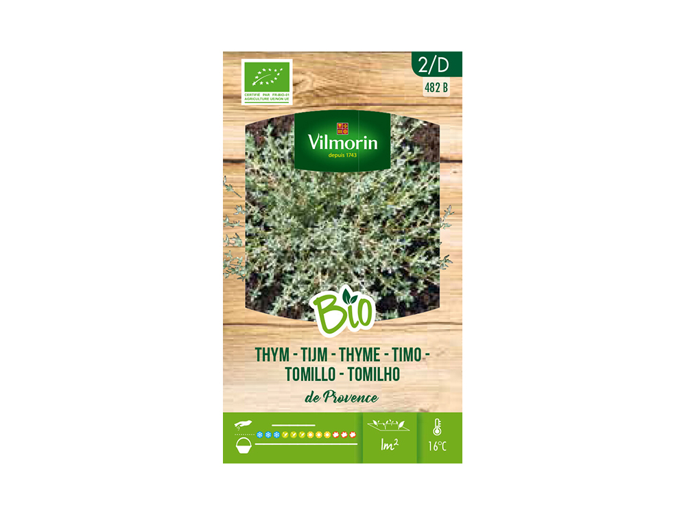 Cultivez vos propres herbes fraîches de jardin, entièrement biologiques avec les graines de qualité de Vilmorin. Le thym de Provence est indispensable pour aromatiser les sauces, marinades, grills et salades.