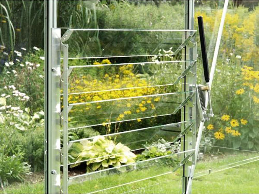 Avec cette fenêtre à persiennes, l'air frais entre et la chaleur inutile, l'humidité et la moisissure disparaissent. Car s’il fait trop chaud et trop humide dans la serre, les plantes peuvent souffrir plus rapidement de maladies et de champignons. Pour un environnement de vie sain, il est important de créer à tout moment une circulation d’air suffisante.