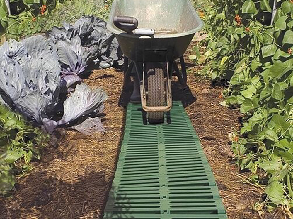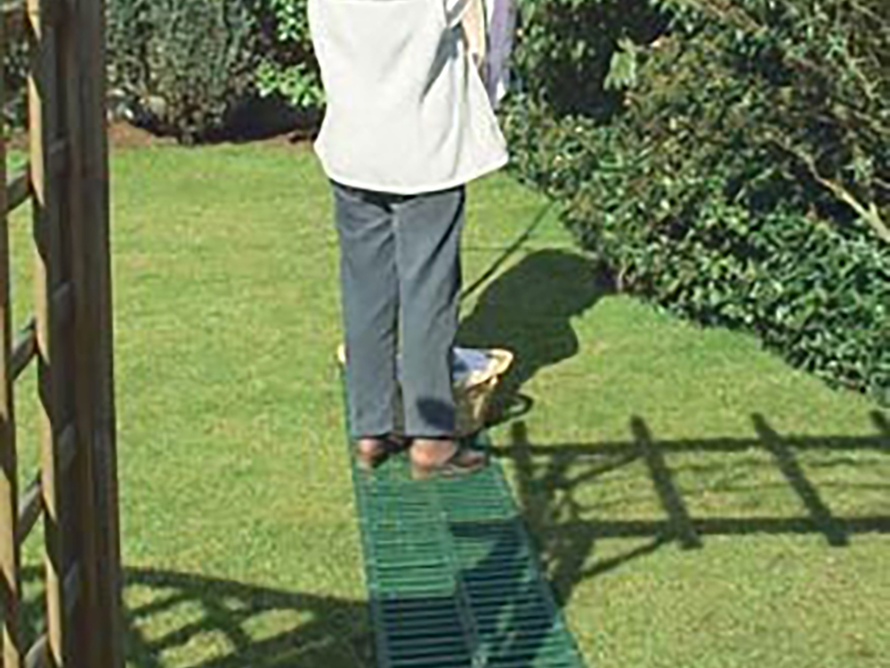 Le chemin est également très adapté pour prévenir les dégâts de pelouse le long des itinéraires fréquemment fréquentés comme le tas de compost, la corde à linge, l’abri de jardin,... Il y a quelques goupilles de connexion supplémentaires dans le boîtier qui servent de rechange ou pour prolonger le chemin lors de l’achat de plusieurs chemins de jardin.