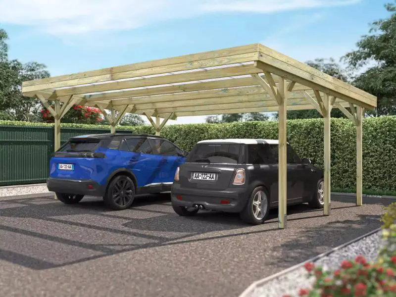 Abri double en bois JEAN – Auvent pour 2 voitures