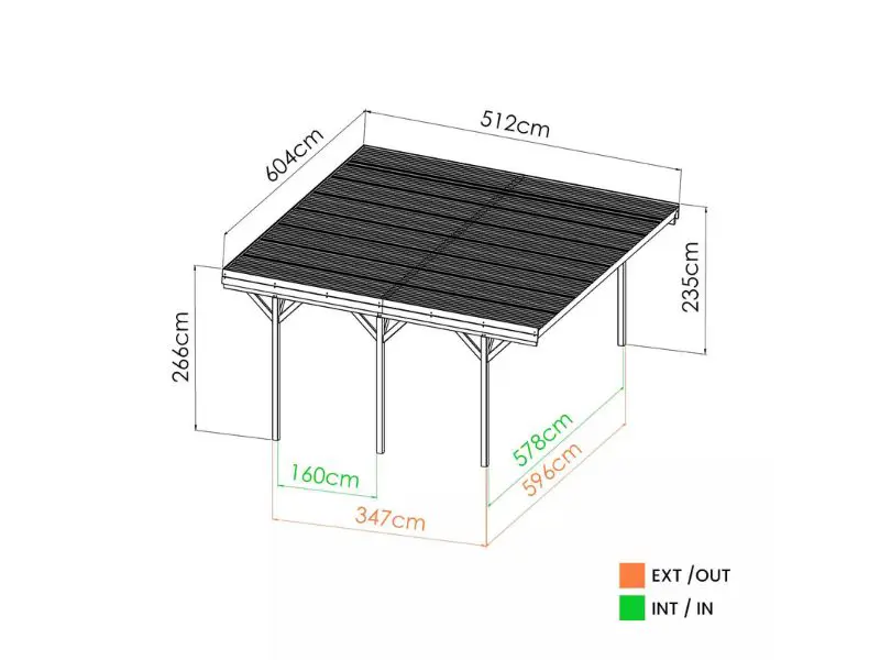 Grâce à sa surface généreuse de 30,9 m² (dimensions : 266x504x604 cm), il peut accueillir confortablement deux voitures, sans compromettre l’esthétique de votre espace extérieur.