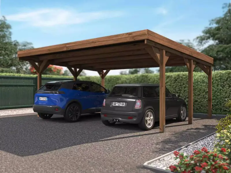 Abri double VICTOR – Abri en bois pour 2 voitures de 30,9 m² avec toit en polycarbonate
