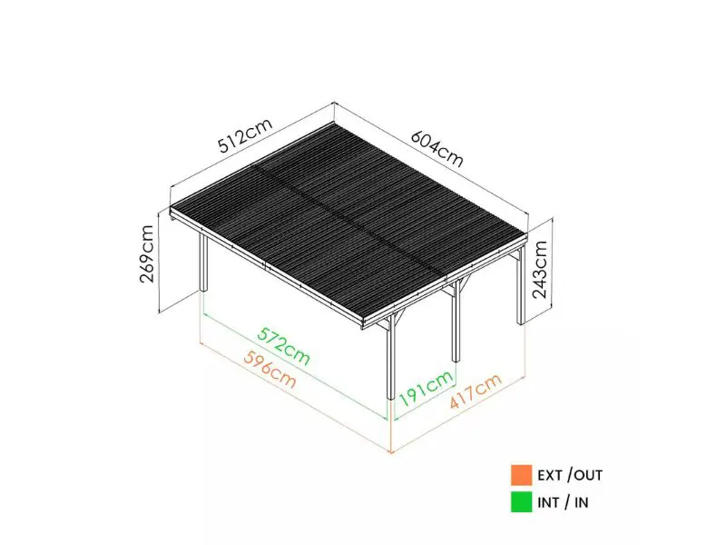 • 6 poteaux de 12 cm et un toit en polycarbonate pour une résistance supplémentaire