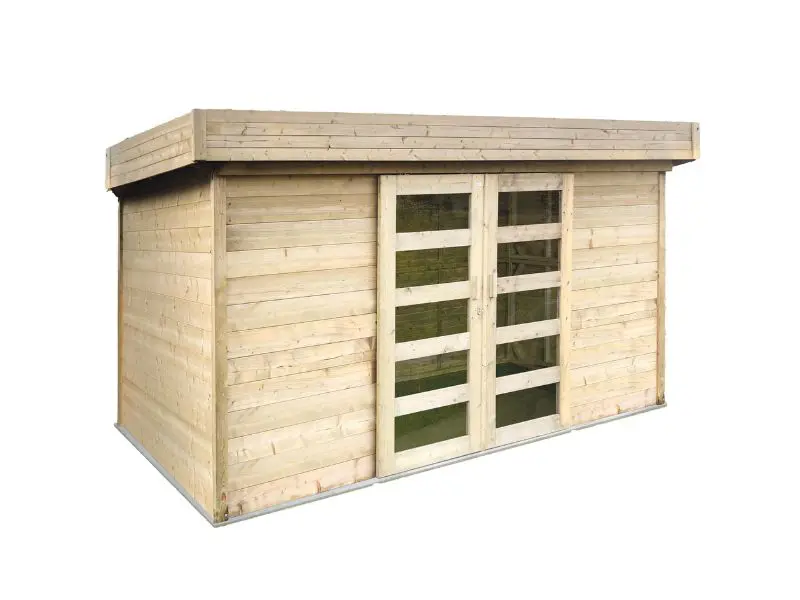 Le système traditionnel de construction de cabane en rondins où des profils en bois à rainure et languette sont superposés les uns sur les autres. Équipée d’un toit avec des planches de bois de 16 mm et d’une toiture noire. Verre trempé transparent. Serrure avec protection pour enfants. Système de ventilation.